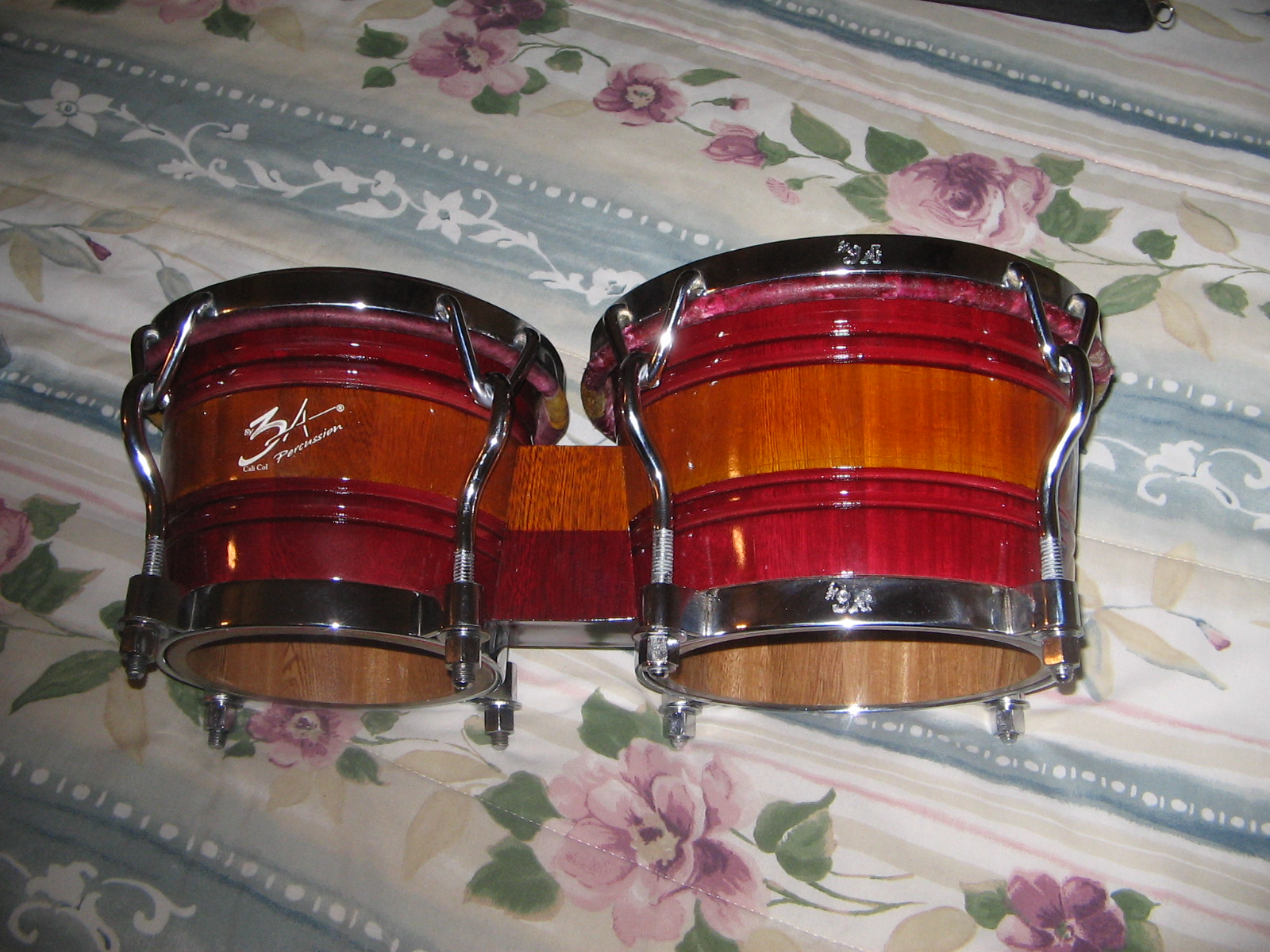 Bongoceros :D , Next week 26 May, Alejandro Arce (Aka 3A) will land down here at the Island of enchatment with 20 bongos for sale. If anybody is interested let me know so cordinations can be made.The Bongos are made of Rose Wood (genus Dalbergia) with superior skins , heavy duty hardware and ready to play as you can see on this post pictures. Price would be $250 plus shipping. My cell # is 787-550-3932.