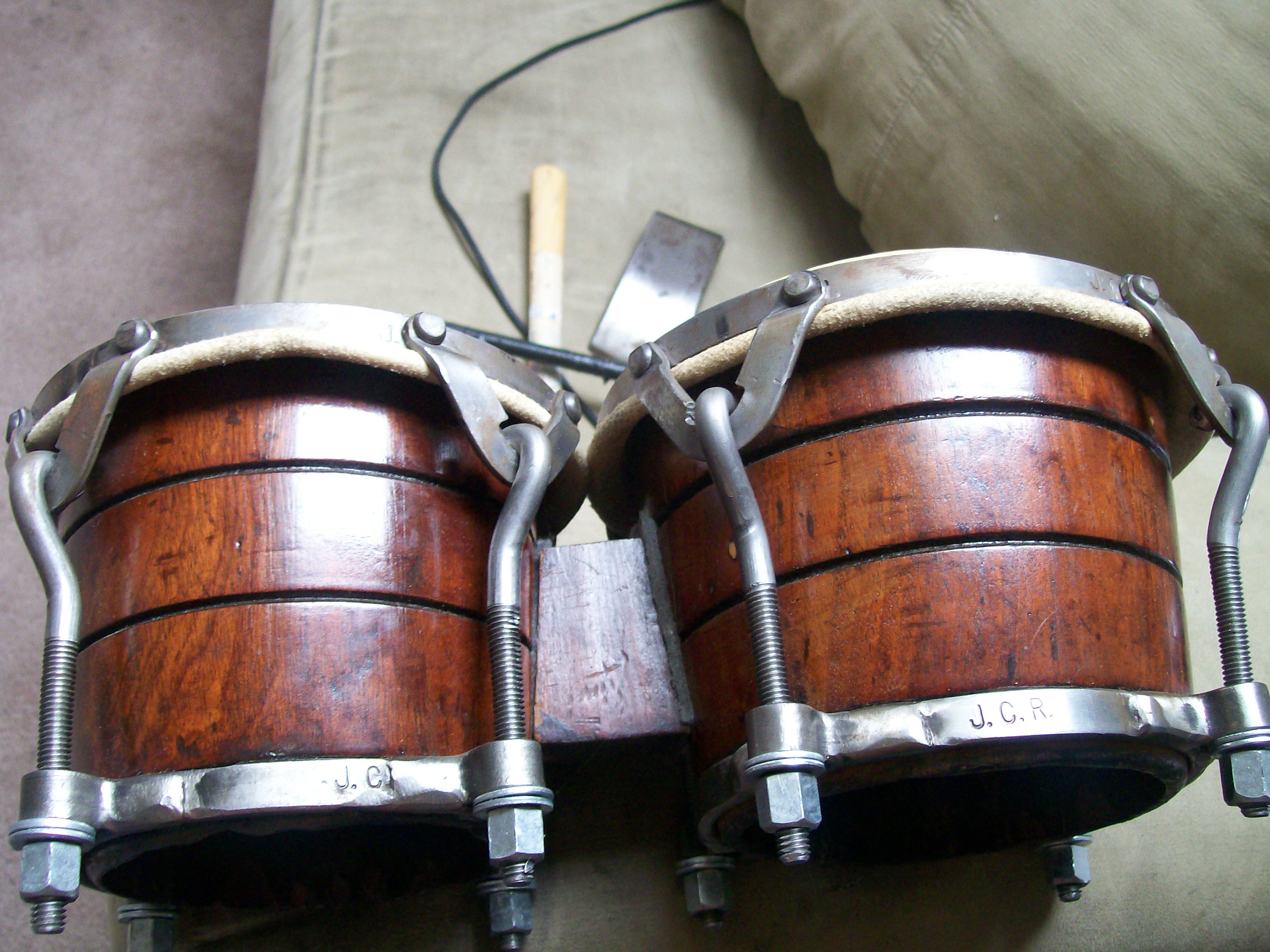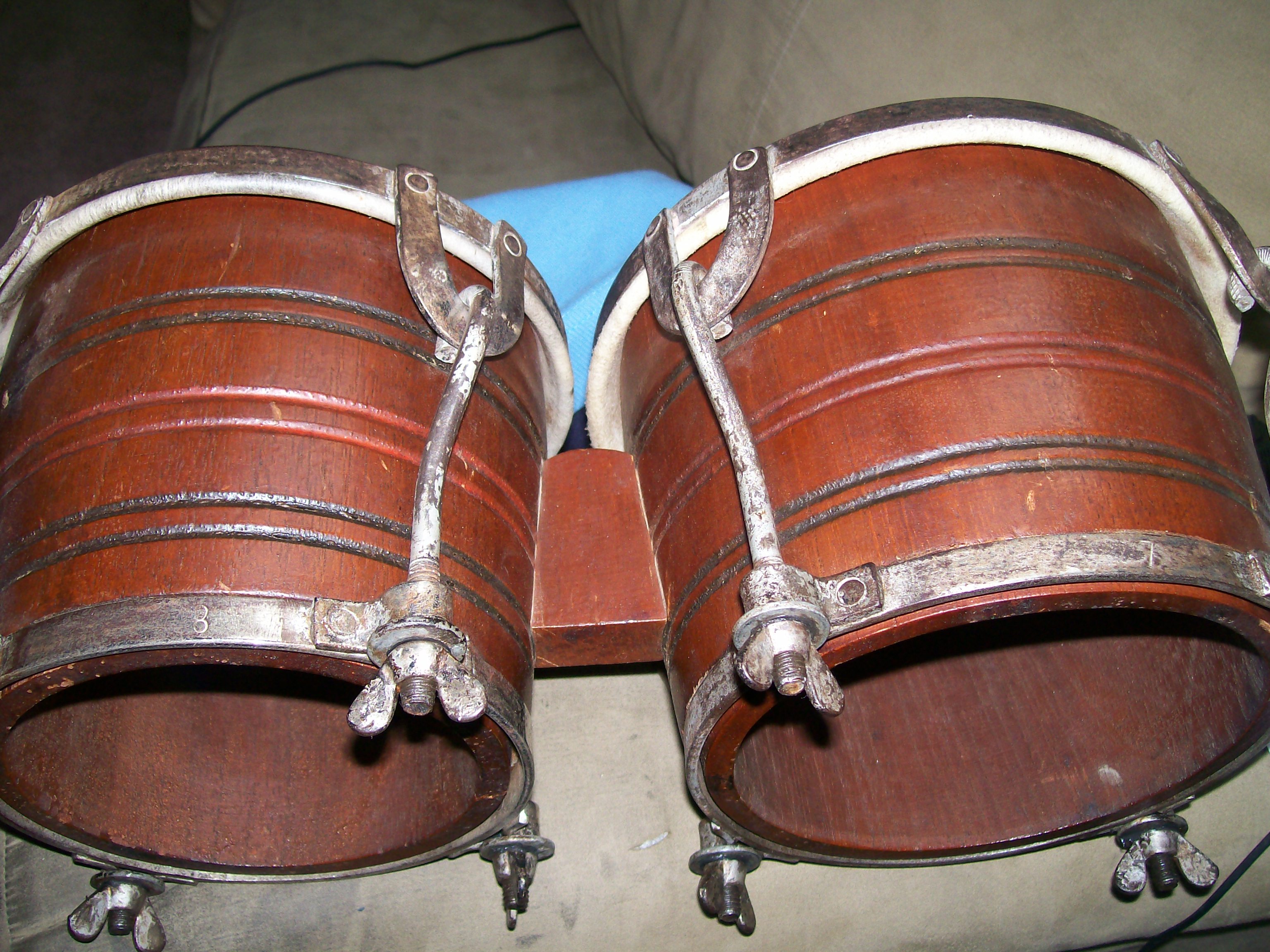 docarroyo wrote:I agree with Cuco 100%, hand control or technique is also key to volume and tone. You also need to develop your hand bone structure as do martial artist by striking hard object to make the bone denser as in knukles, shins and back of forearms. At least this is as I was taught. Another reason I personally mount skins higher is so that they last longer. I still practice on box bongos made for me in Puerto Rico heres a photo of them and another of a set like Cuco's with metal work by Cali mine are Cuban Caoba attributed to Vergara who didn't always make drums with hardware.