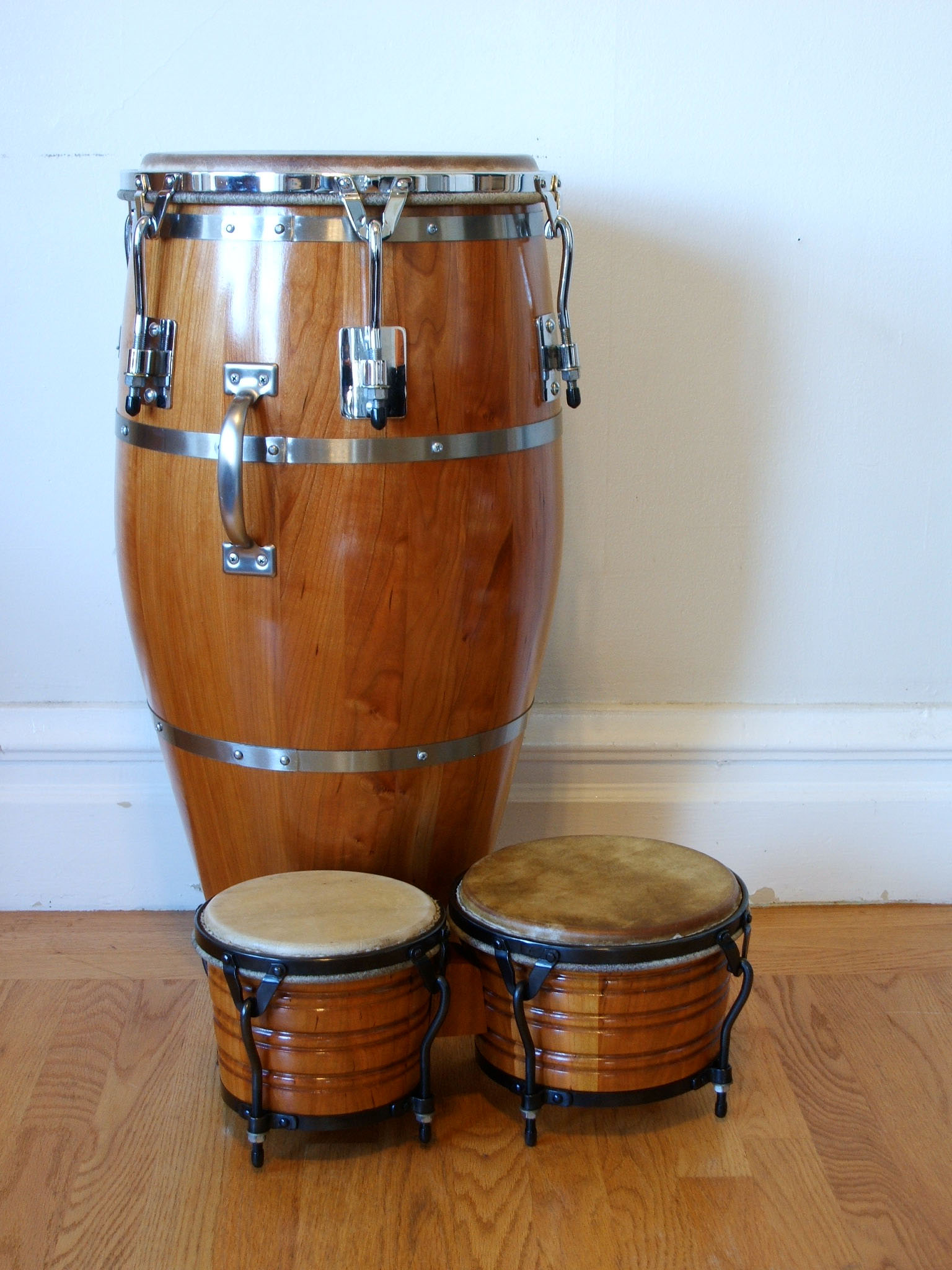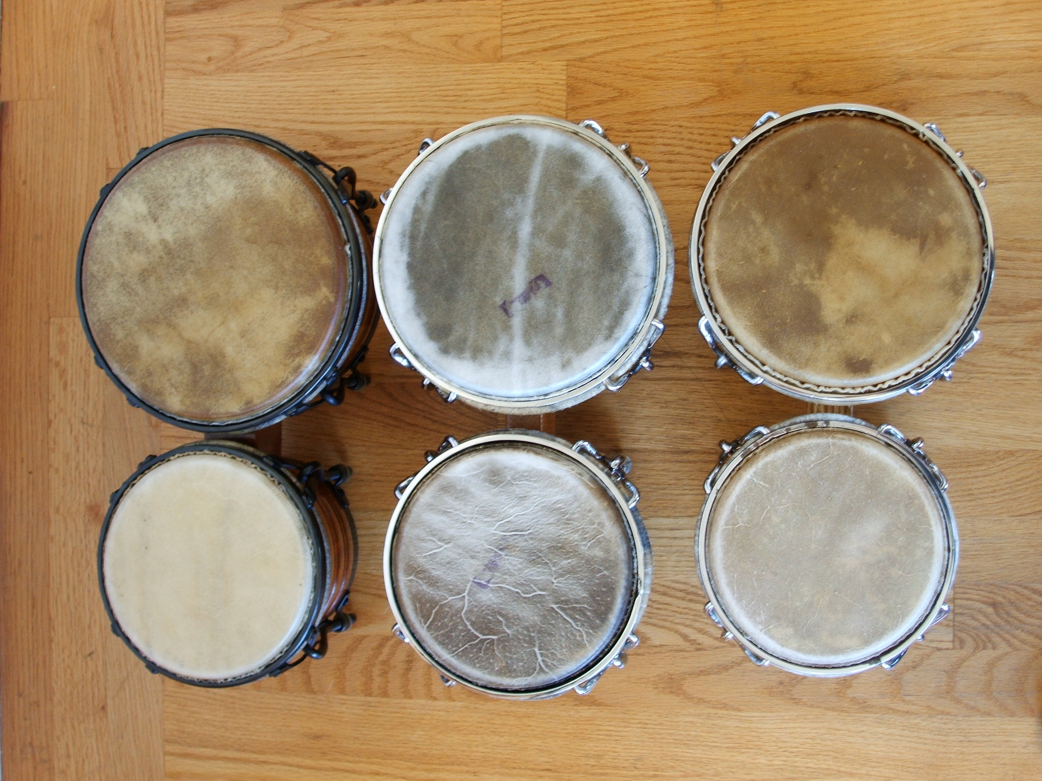 I was inspired to take a few more this morning, each bongo with it's matching conga. The Resolution is really the only one I ordered to match, the SOS and Valje just fell in my lap, both deals too good to pass up. I'm not really looking for anymore bongos, but I do have that vintage Gon Bop conga and a vintage Gon Bop bongo would be a nice match, and I have that DW Gon Bop California series conga, and Isla is making bongos too now. But that would be way too many bongos... :roll: :wink:
