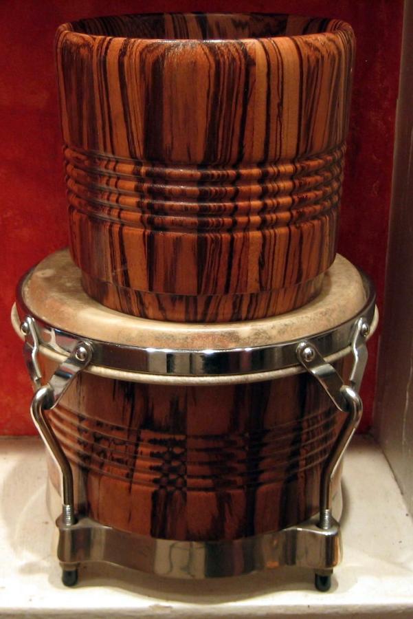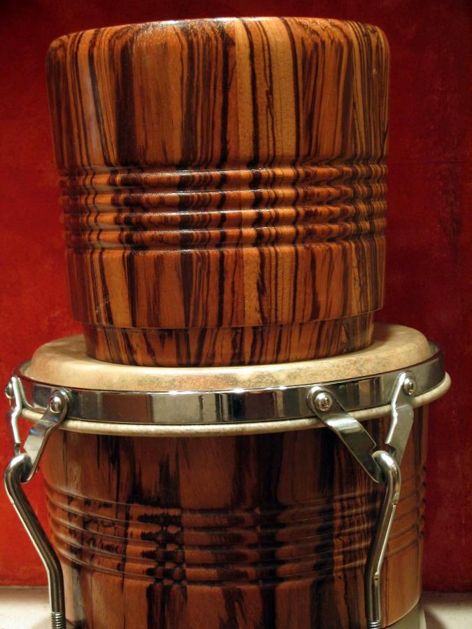 The only bongos I've seent hat come close to those in terms of beauty are the ziracote drums mario is making in Belize. nice stuff, I never even knew about those zebra bongos before.