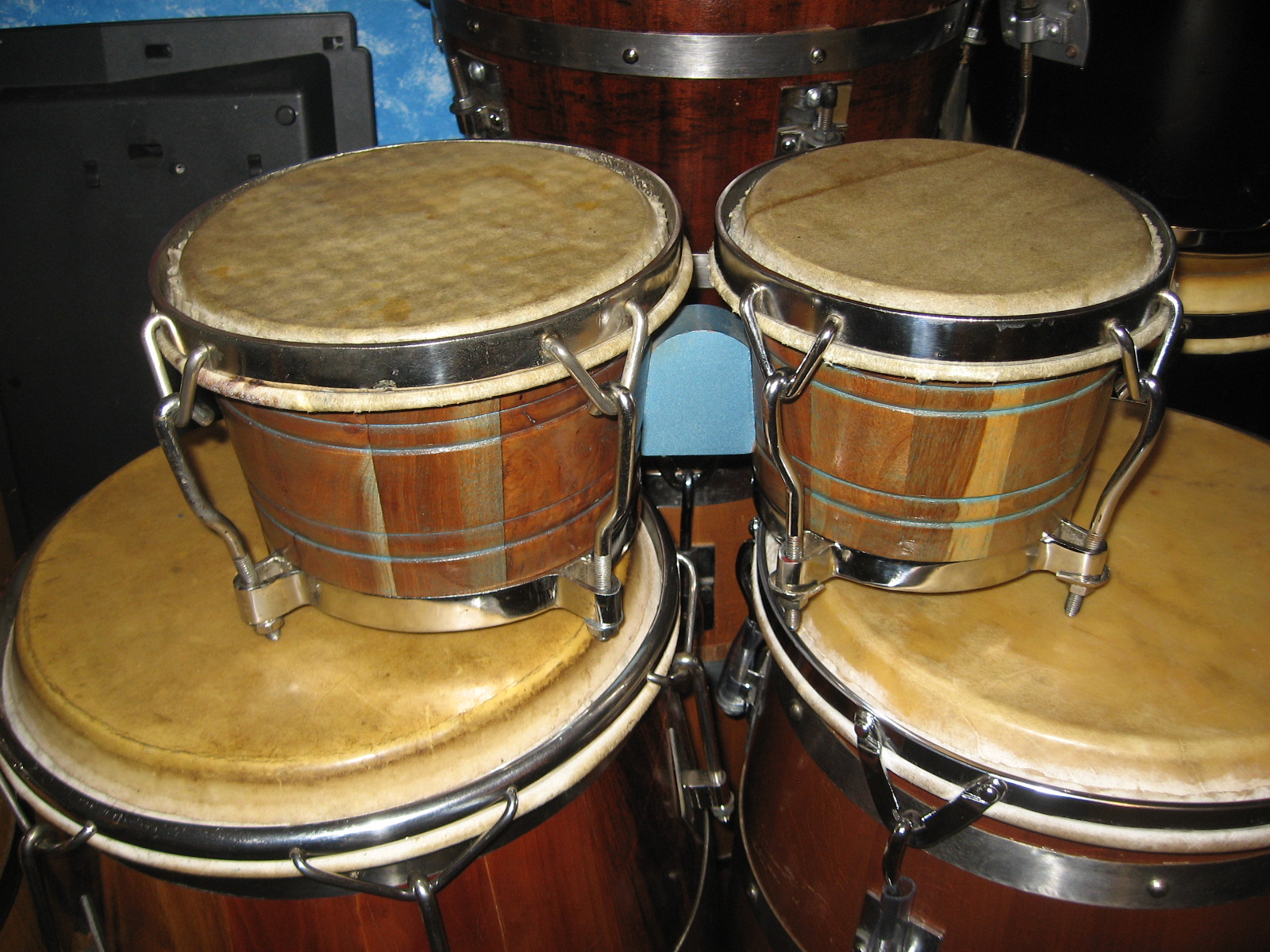 The processing of Caoba stopped around the mid 80's in Cuba. Those drums Marcelo saw were made prior to that time. I know the Fernando Ortiz factory (where SONOC were made) stopped processing Caoba tumbadoras, bongos and batas. Cuban cedro and roble (oak) were used in substitution. My Cuban Sonoc quinto is Cahoba, was brought over from Habana by Guille Garcia, who played for the rock group Chicago in the 70's. Guille brought back 5 Caoba SONOCS, which at one point in time were all mine. I recently was able to retreive back the quinto, which sounds awesome and is somewhat heavy. I which I would have kept them all, now that Matthew is on the scene. I sold them because the humidity in Miami made the staves split and the glue (cola) used in Cuba is of a very low quality. Photo of quinto and of the 5 I had, sold them about 10 yrs. ago.