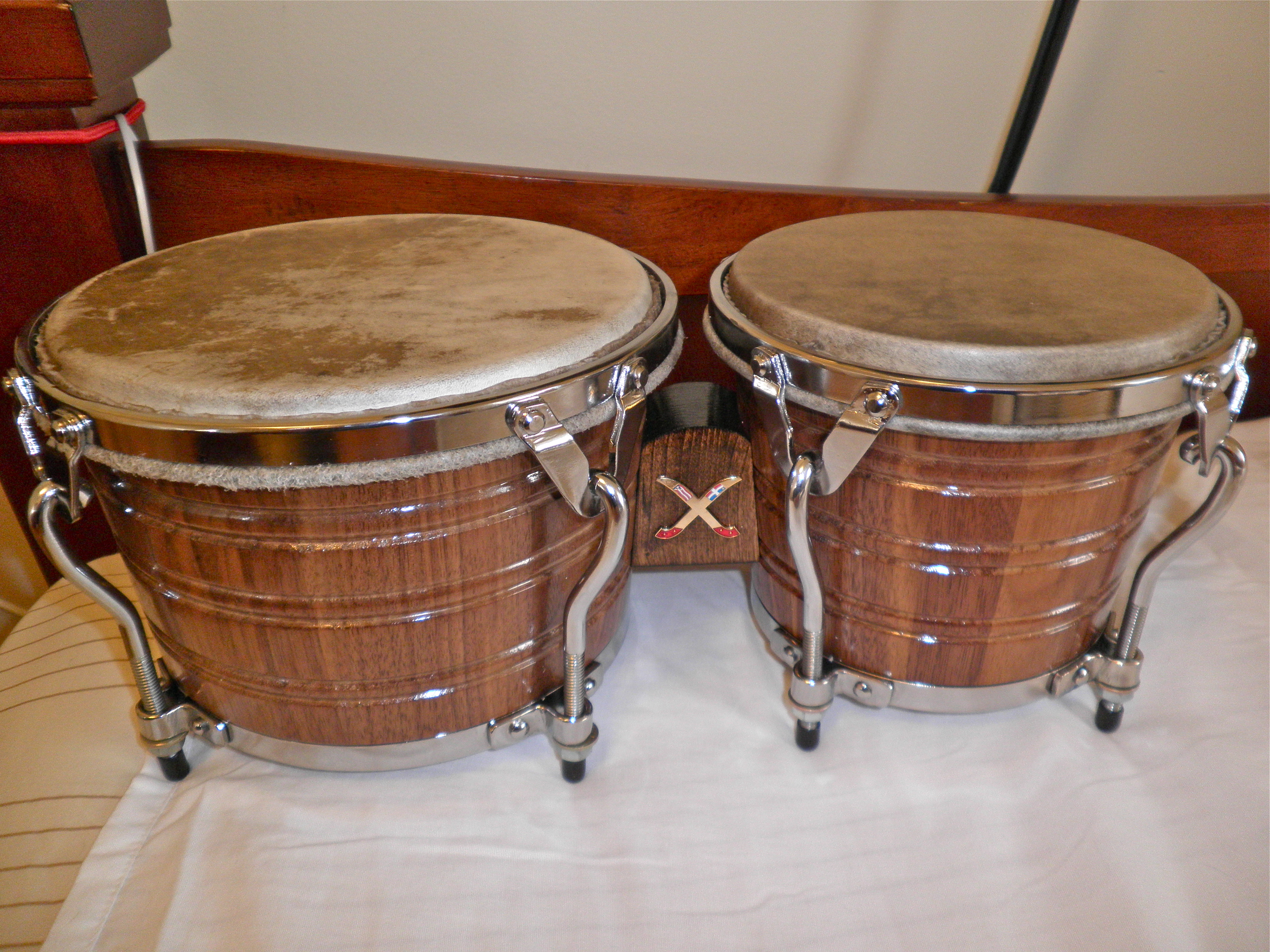 Matthew Smith made the hardware for the CR set, thick & rugged to accommodate the thickness of the shell body. I outfitted that bongo set with a new thin mule on the macho and it pops beautifully. The original head was olive oil treated, thicker but with less crisp pops when slapping or playing a standard martillo pattern. A little heavy but solid nonetheless.