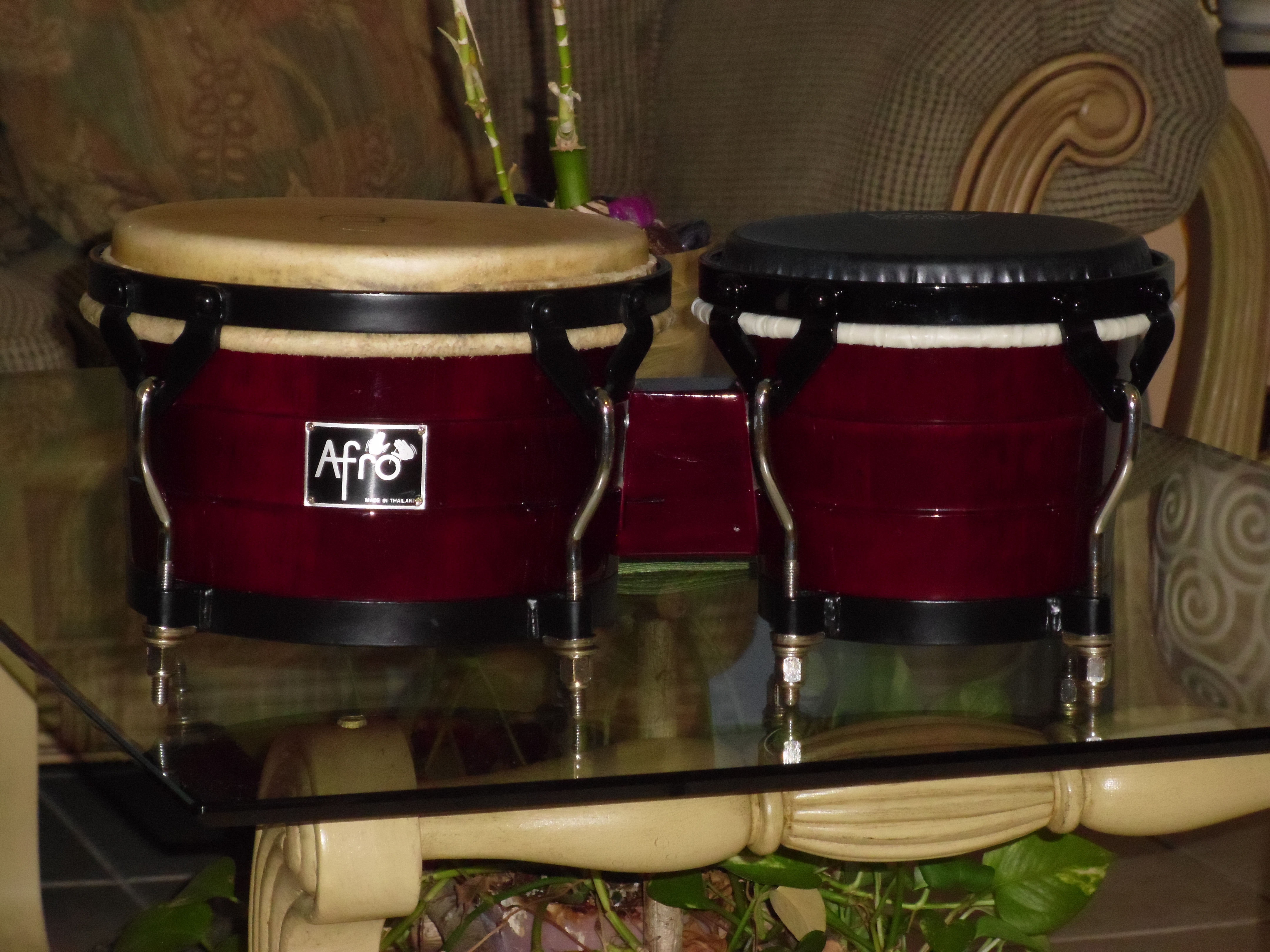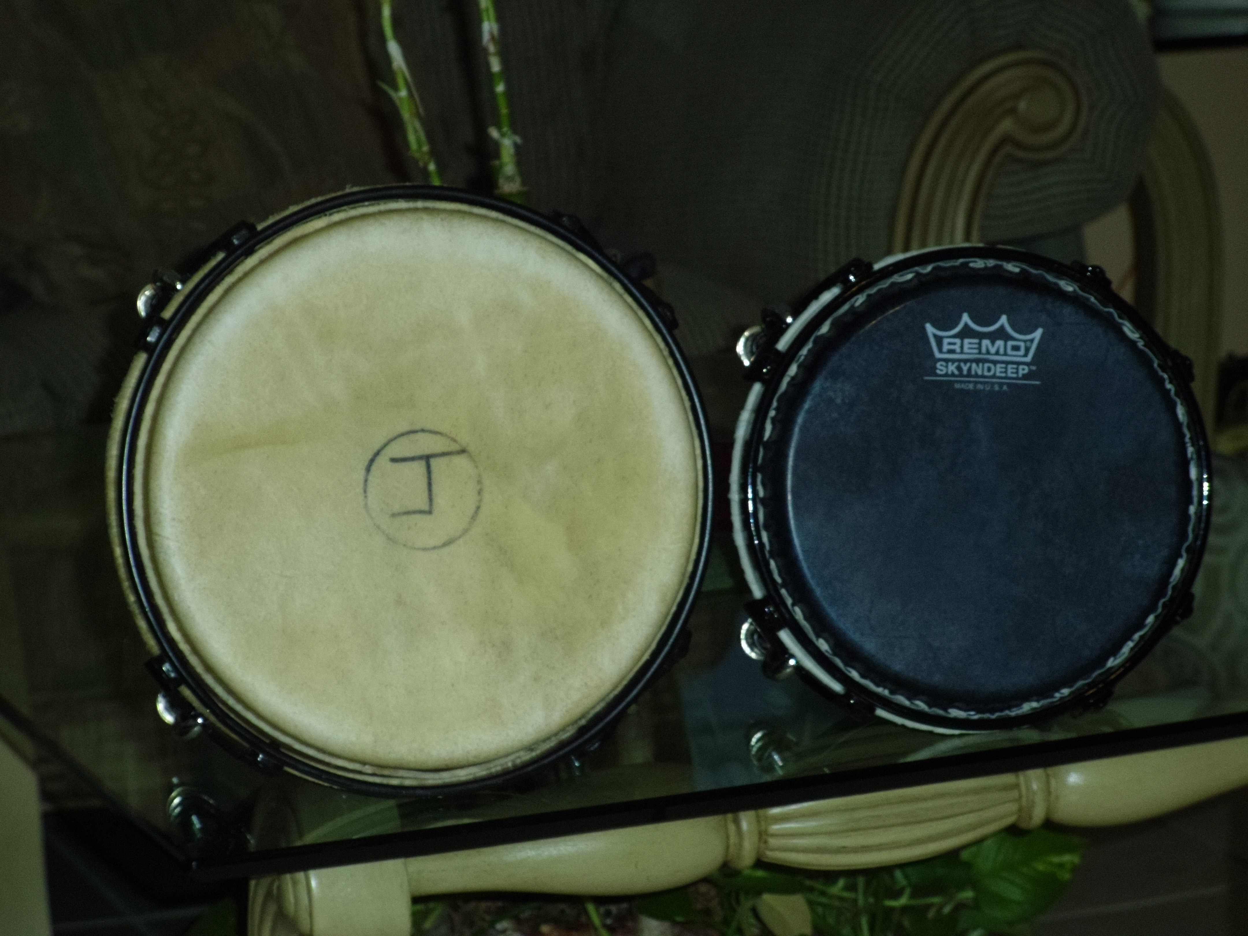 Saludos, just got this Afro Bongó from ebay (7.25" x 9" unknown wood 3/4 thick) for only $61.00 :D . He has a broken crown where some rivets were loose so Timbas del Valle was up to repair it. He replaced all 8 rivets and also painted the crown. So, I have use it to rehearsal and is on schedule to gig this next sunday at El Barril D' Jun ( Juns Barrel) where I ll" be playing with an 8 piece conjunto. Thus far it has a very deep Hembra sound with an overall excellent volume projection and only have spend all together $105. Both skins were available in my bag of spares.
