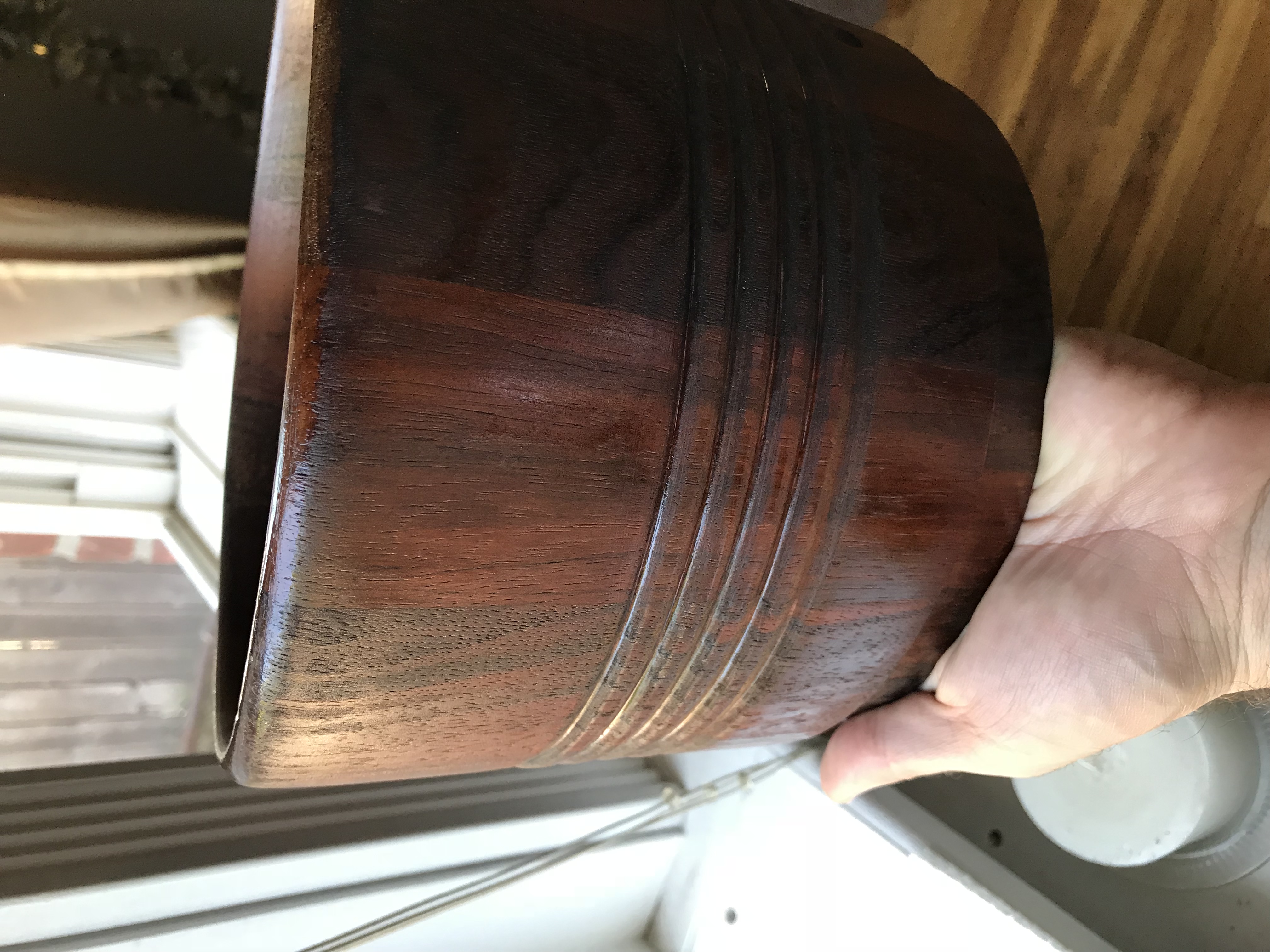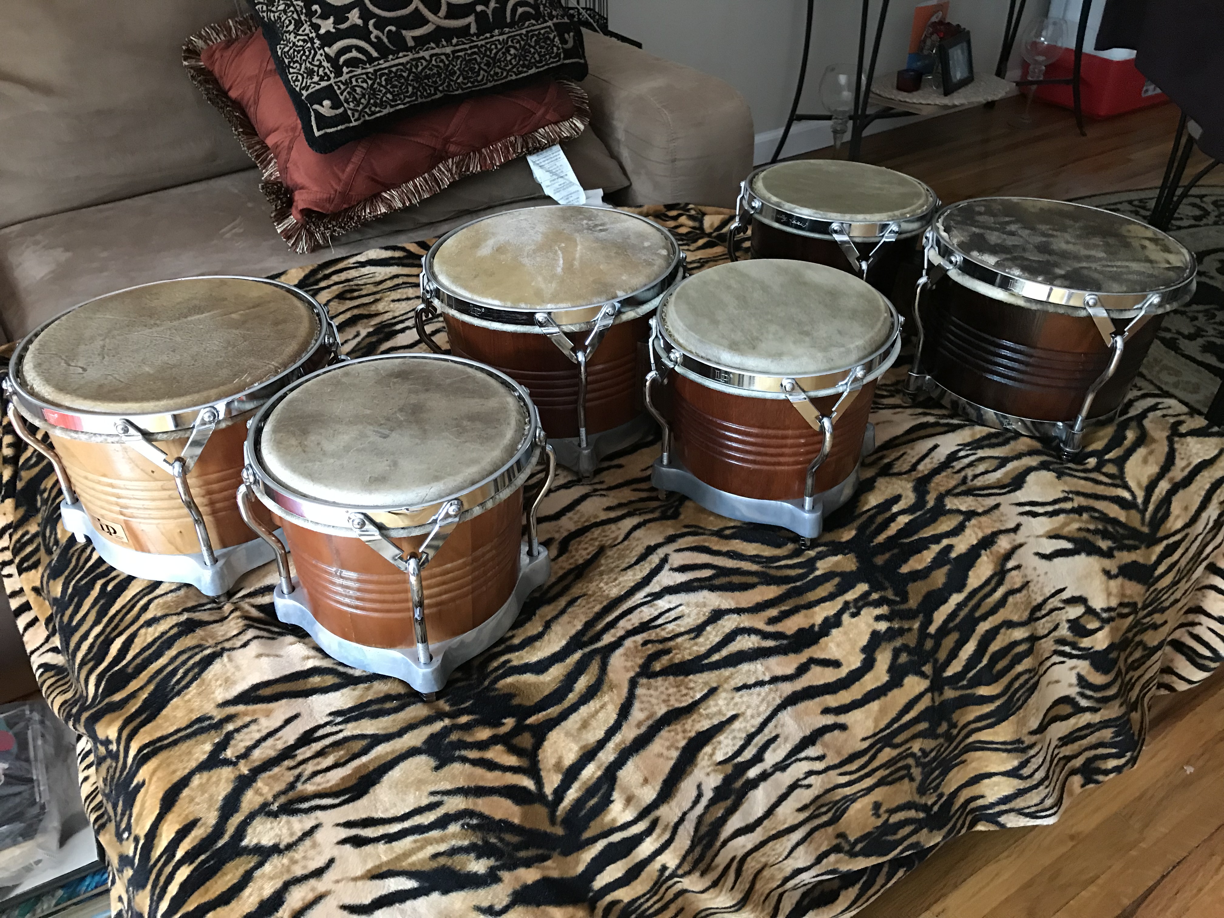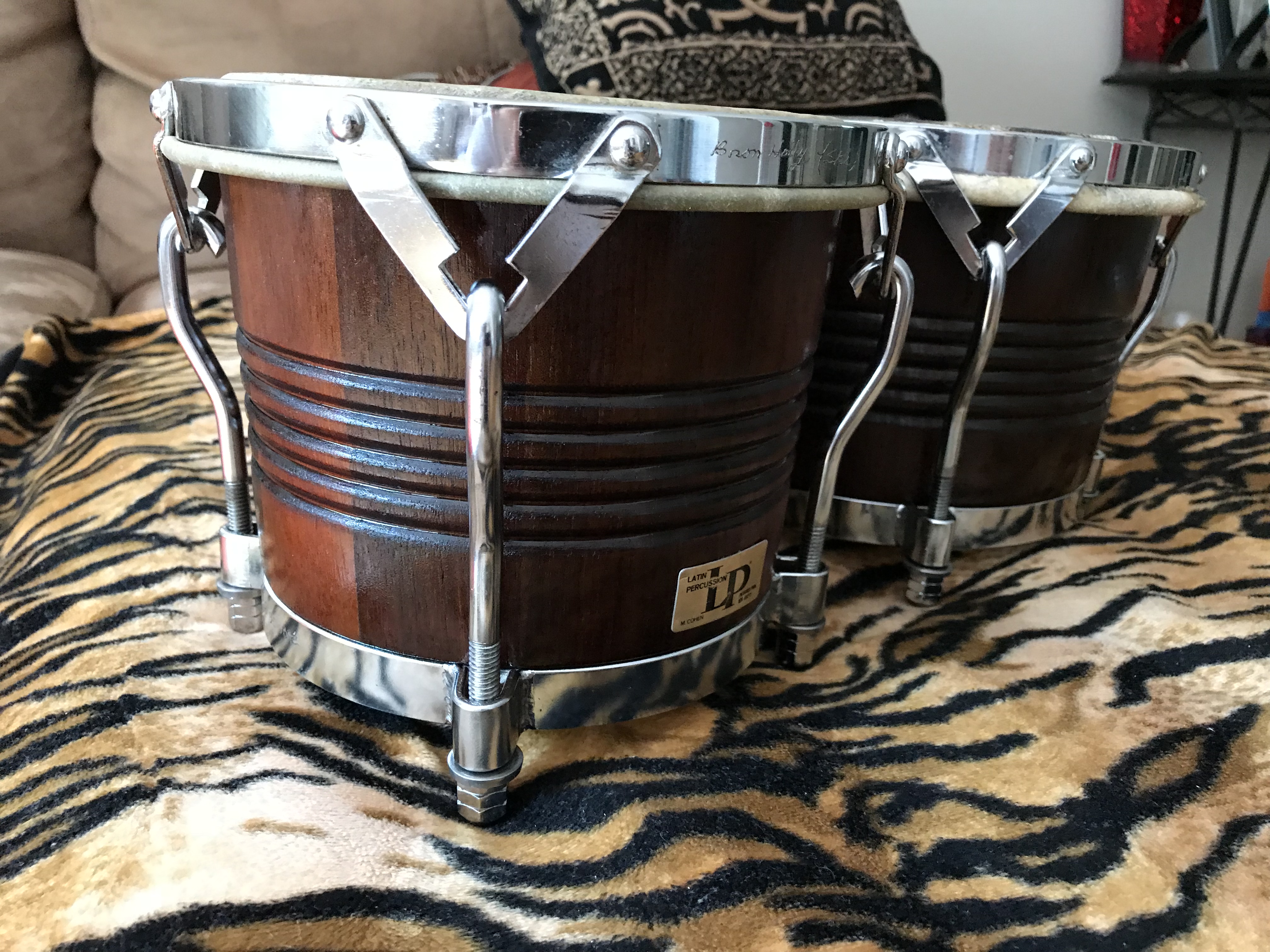 These are the newest addition to my collection. These are either Rosewood or Dark Walnut, LP Pallisades Park with Cuban Rims (late 60’s, early 70’s?) A previous owner engraved some stuff on the rims. I’m going to have that removed soon. These sound awesome and look Great. I added Mule skins on Macho and Hembra.