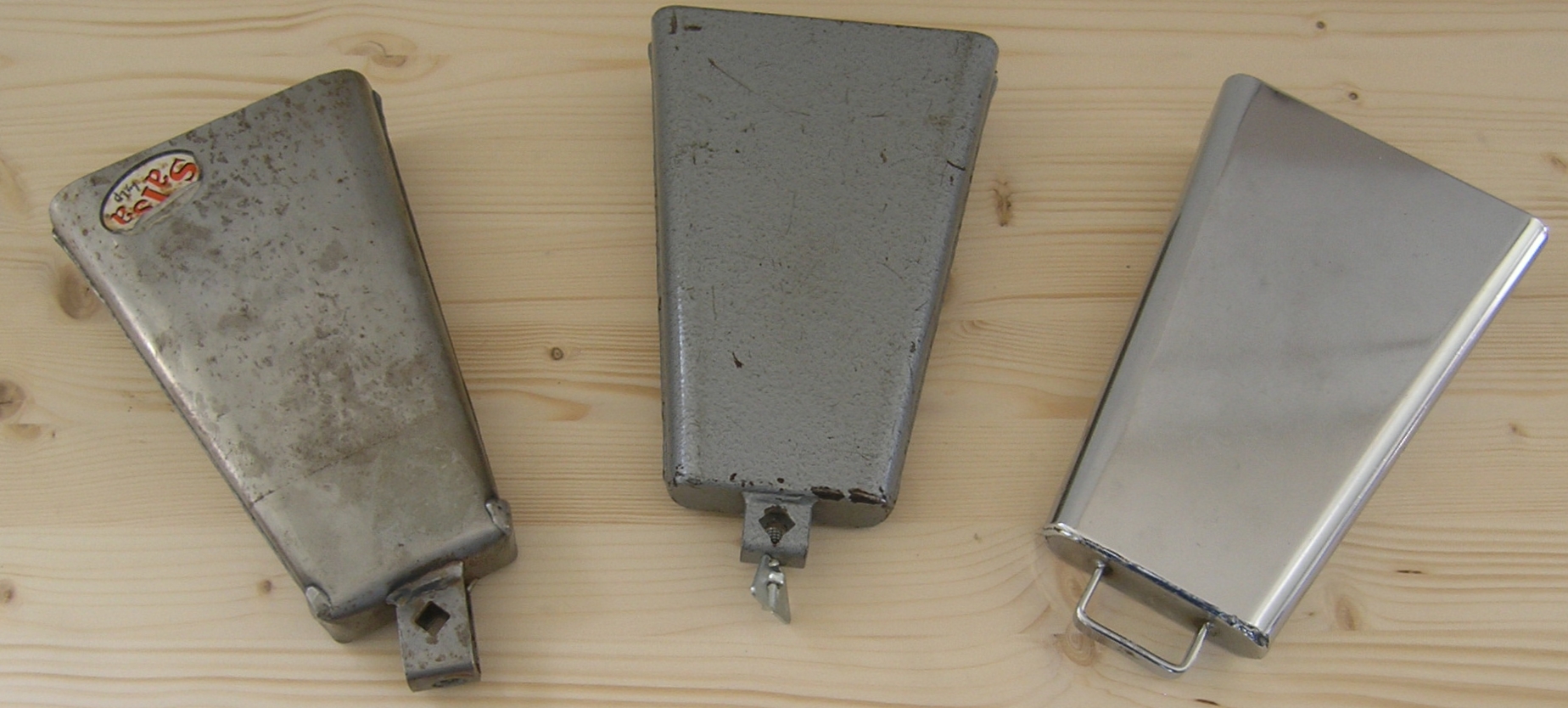 L to R: LP Salsa /Songo bell, two 1980's LP bongo bells