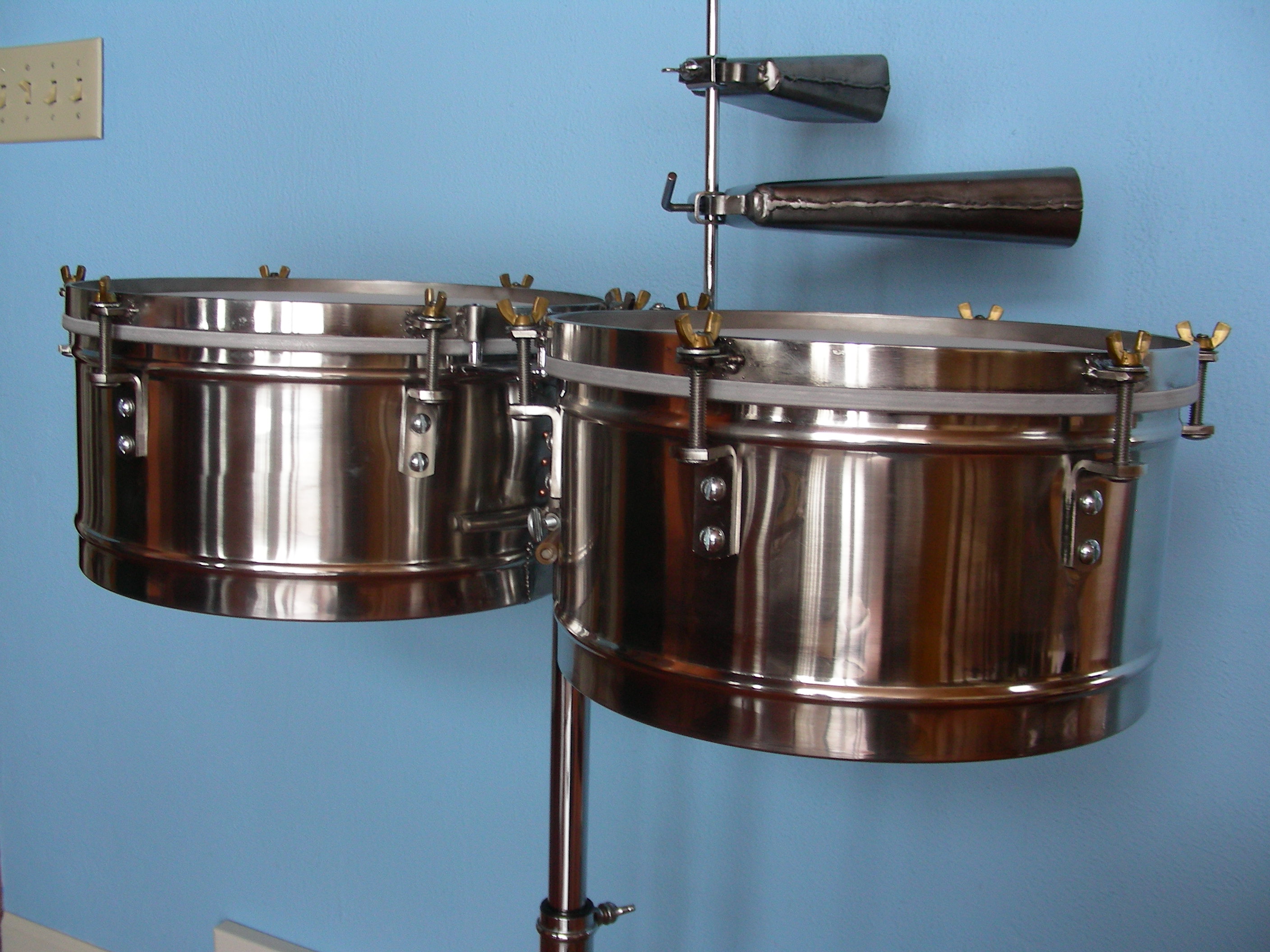 That is a fine set of timbales you have there. I have never taken up the instrument myself as I have more than enough to keep me going with the congas and West African percussion.