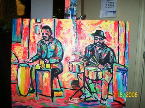 The Art Scene, Rico on Congas I am on Timbales, Doug Norton painted us during the gig