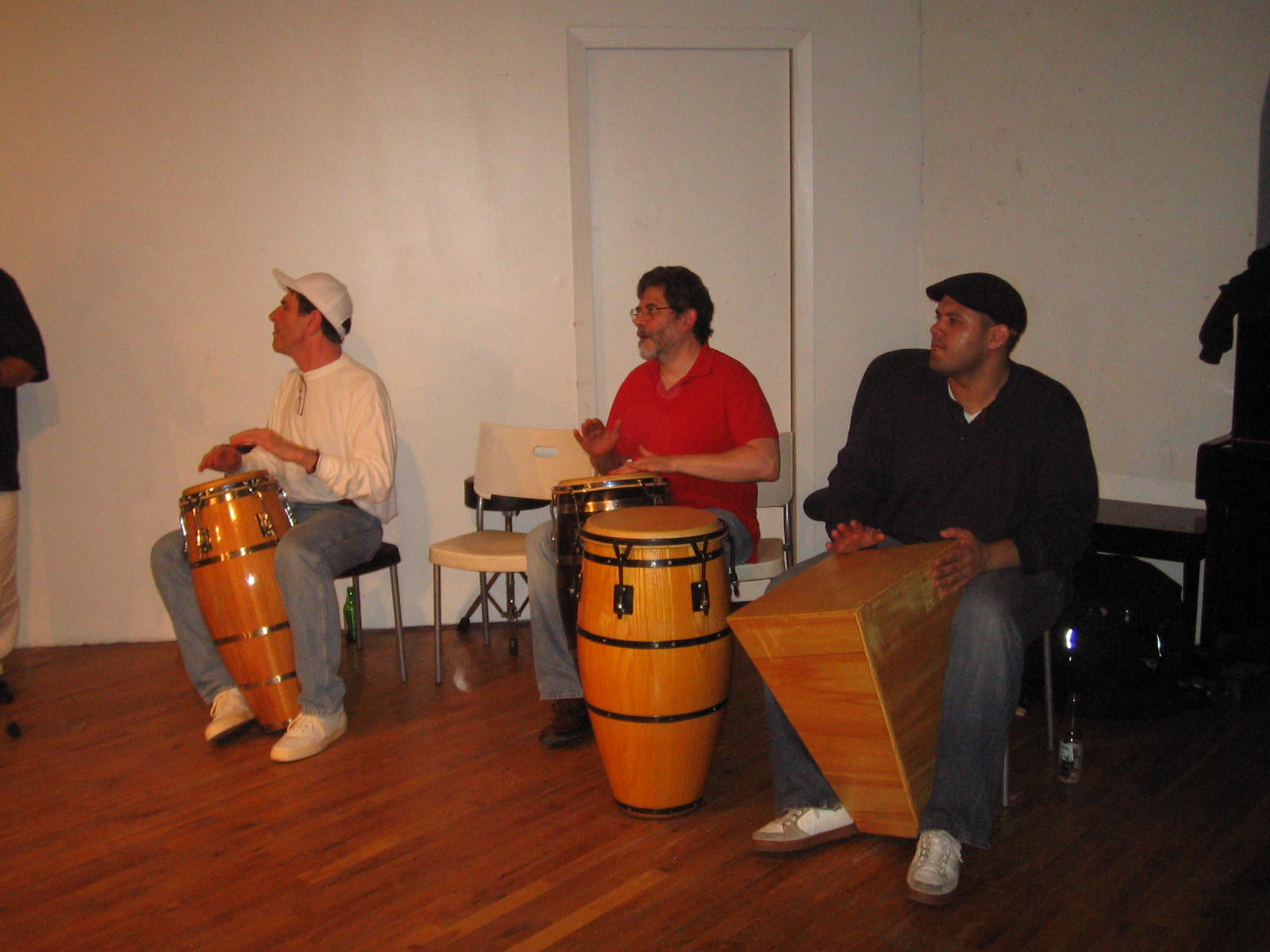 Here's a clip of a rumba we did for a cuban fundraiser. I'm playing 3/2 with the black hat, Jorge on guagua, Mark Sanders on quinto, Gordo on tumba, Max and Barry singing, Skip Burney and Yesenia dancing.