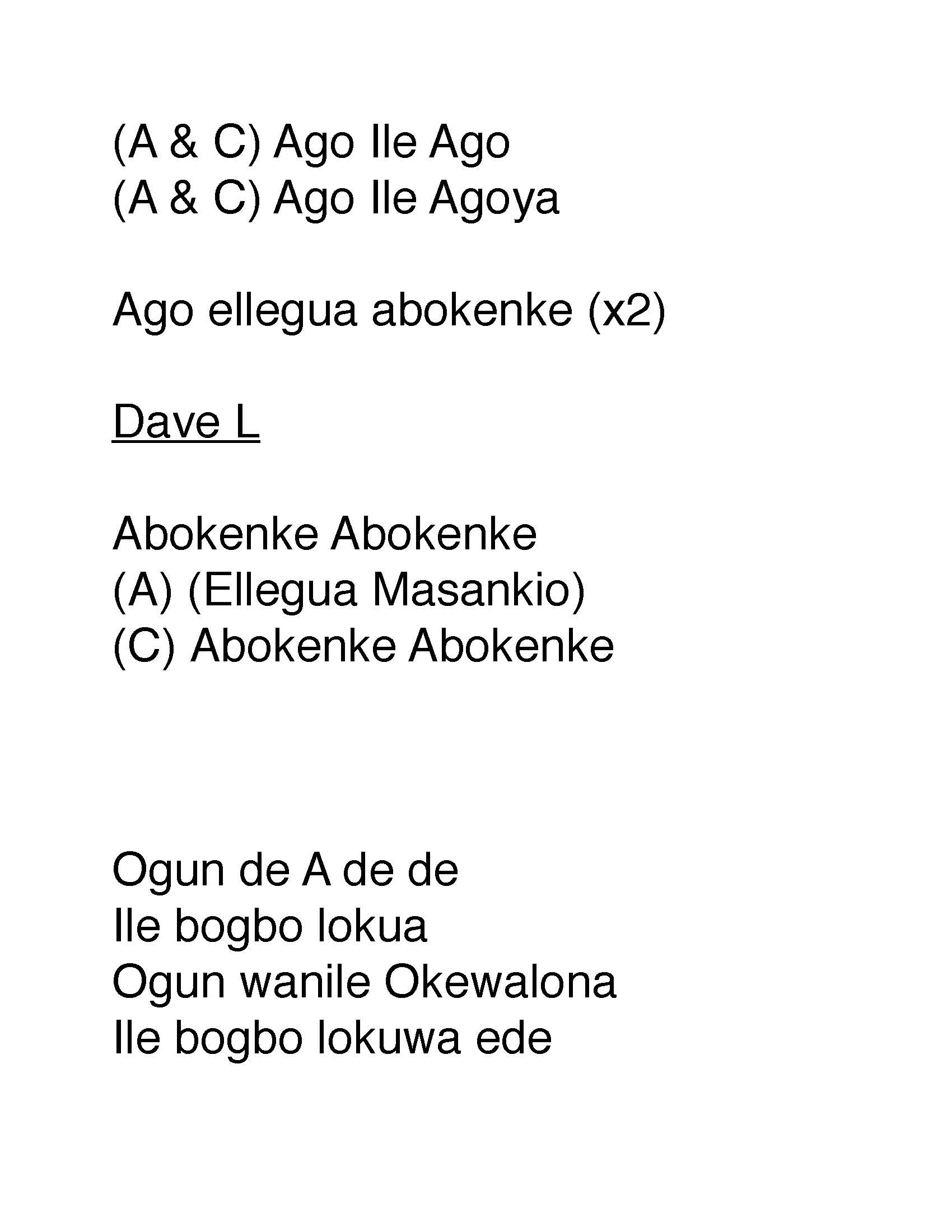 We'll start with an Ararà Rezo that I learned from Lazaro Gallaraga, then I start the Bembe with Ibarago with bell coming in after one clave into the song.