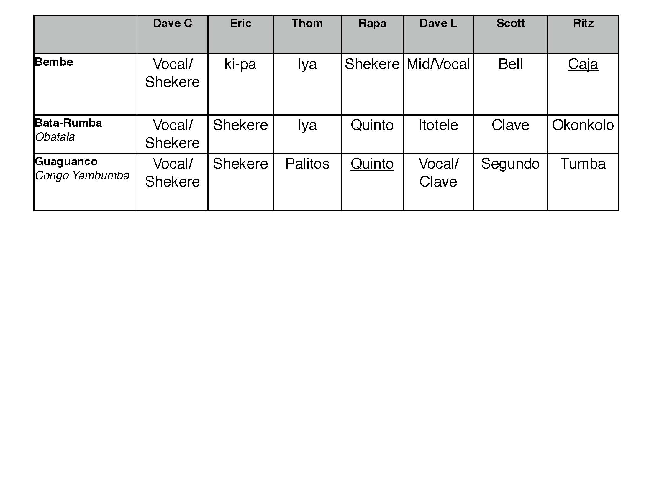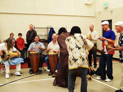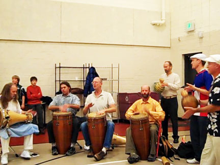 http://dl.dropbox.com/u/10287309/school/bembe.MP4 Recorded on a flip, and the viewer was close enough to get muddled mic overdrive. But, I liked our energy and intensity. I hear myself singing flat at times, and the lead drummer taking more liberties with flams than I like, but I'm still proud of where we are now. I love Thom's Iya, and Dave's middle drum/akpon/coro. The two Africans randomly coming in to dance during the Ogun sequence were in the closing act. They're two of the best musicians I've ever seen, so I was really honored when they danced to our tune.