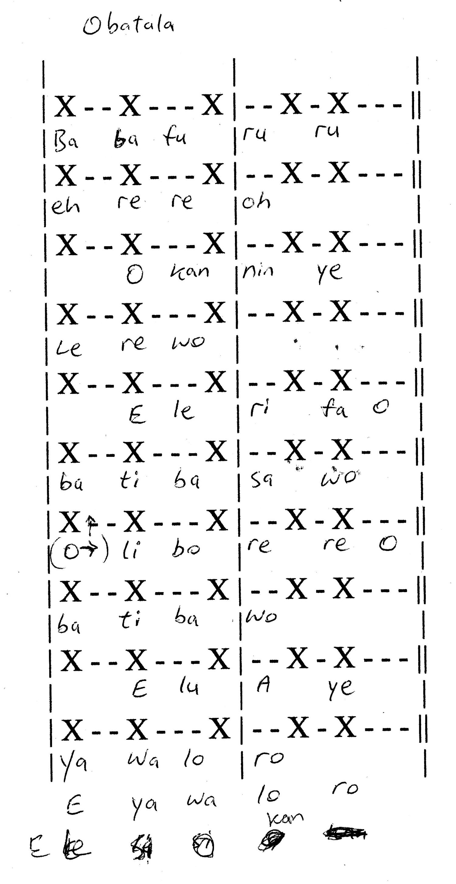 Then, we do a bata/rumba with all three bata and quinto to Obatala.