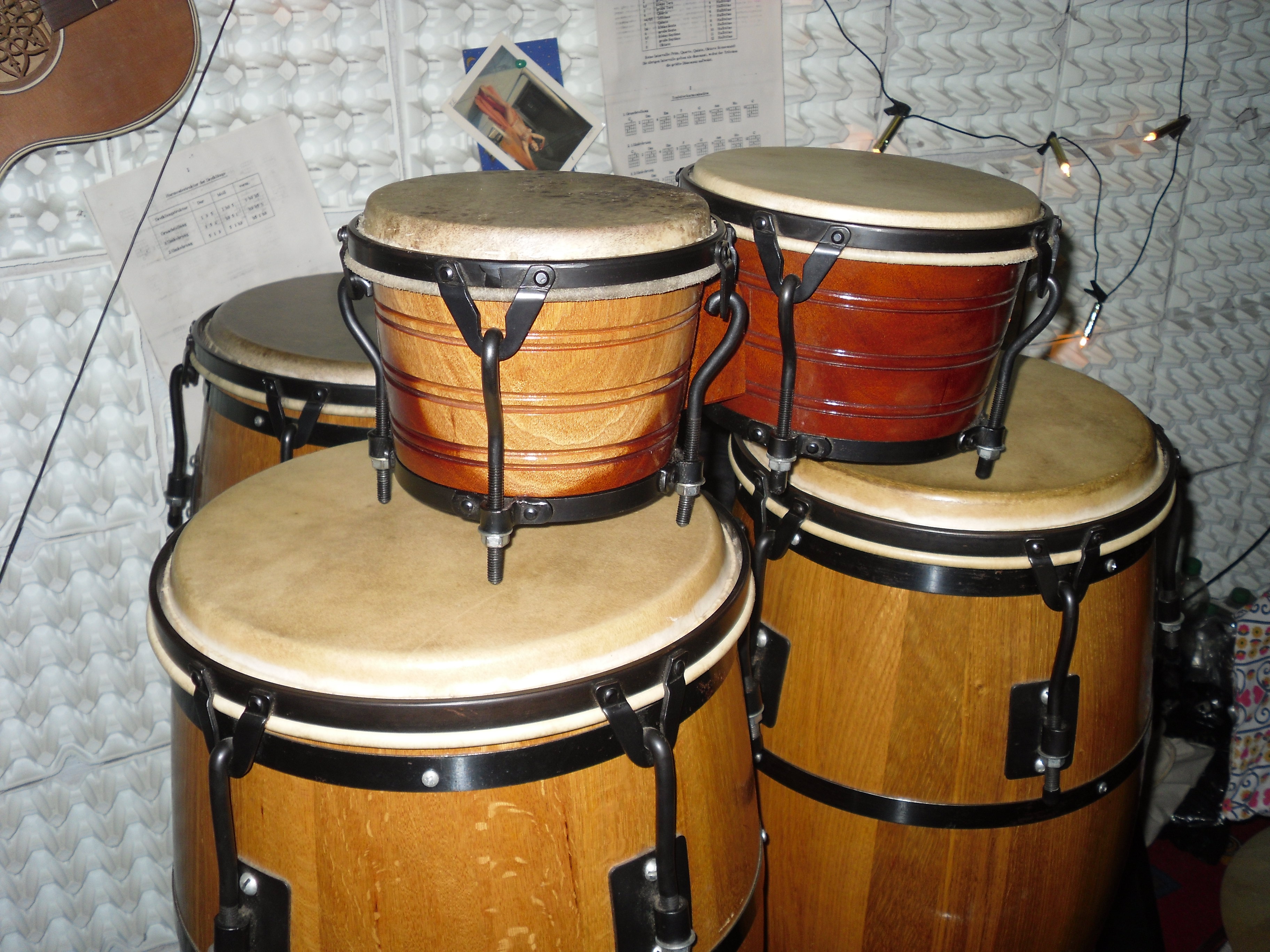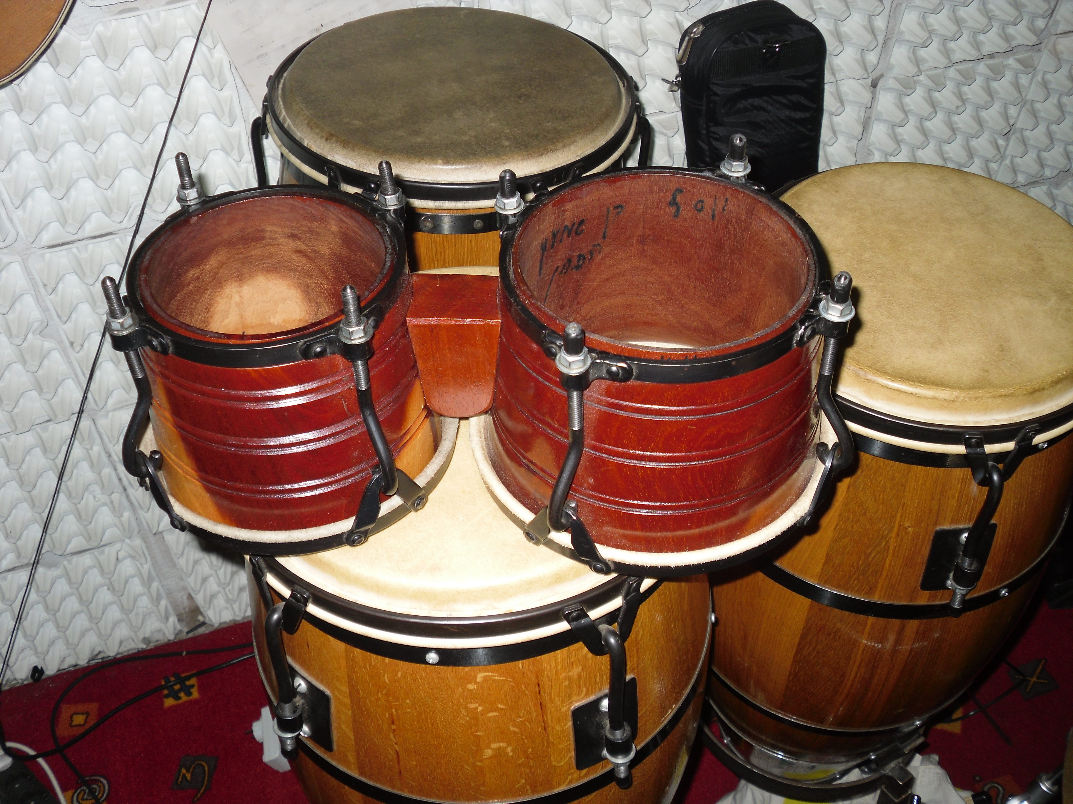 Some years ago I also had a set of four cherry wood Congas from Jay, which I also sold to a friend. The bongos are from one piece Mahagony (interiso!!!) which sound fantastico. I hope you enjoy the pictures, Actually I play 3 Wood and Skin Congas handmade in Switzerland. This company does nor exist any longer. I also have a Palladium Gio Series, which is fine. I hope you enjoy the pics.