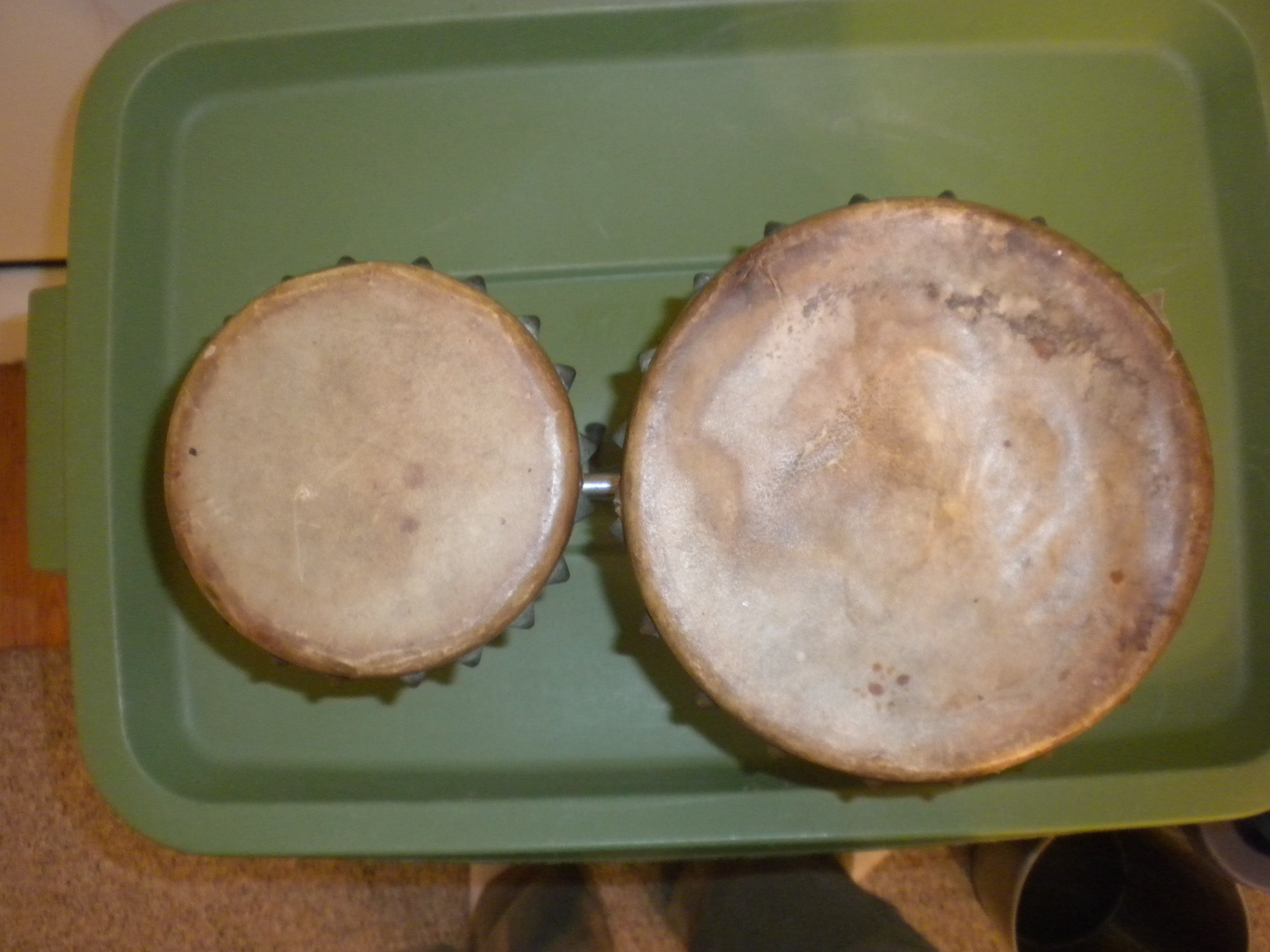 Hello All, These drums where brought to me to identify and repair however the owner decided to move them right to the open market. these are some really cool changui style drums. We are up in the air on the builder some say Flores some say cuban born... either way the wood shells are made from highly figured wood and show minimal wear/no cracks. the macho head is nice the hembra needs to be replaced ( i will provide free of charge). reasonable offers considered. thanks for looking