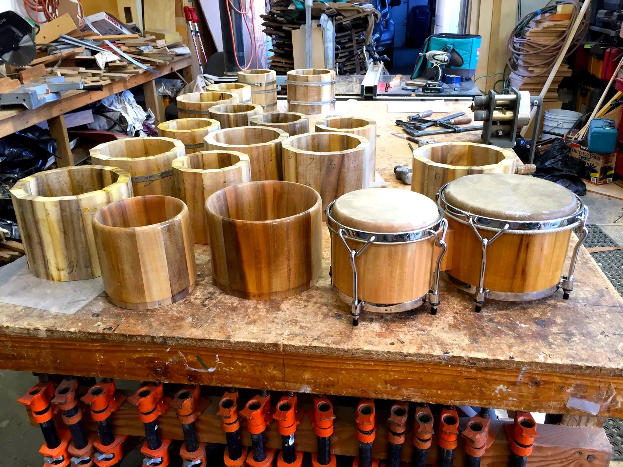 Peter Musser of PM Percussion in Petaluma California is now making bongos for sale using local Santa Cruz wood.
