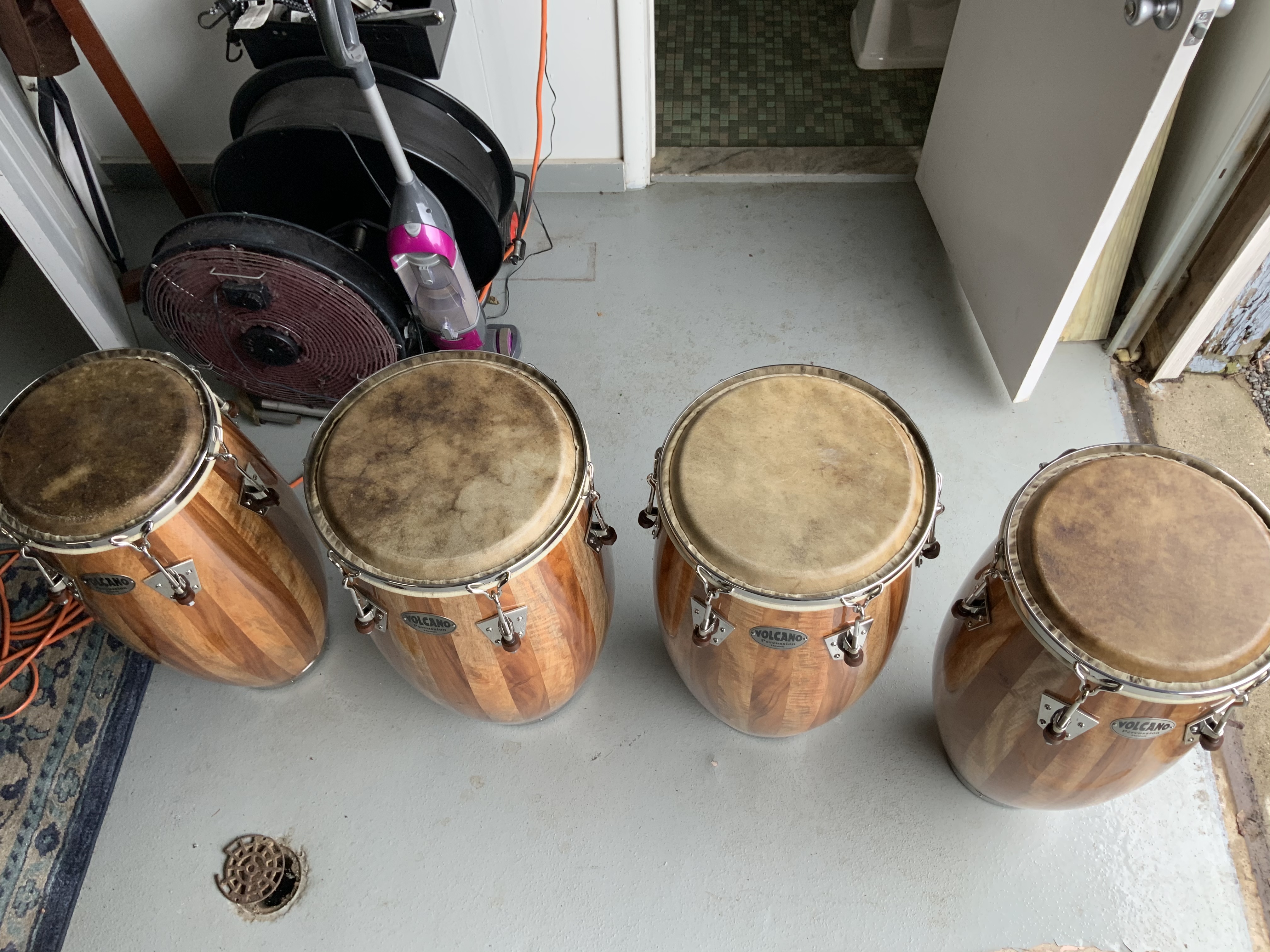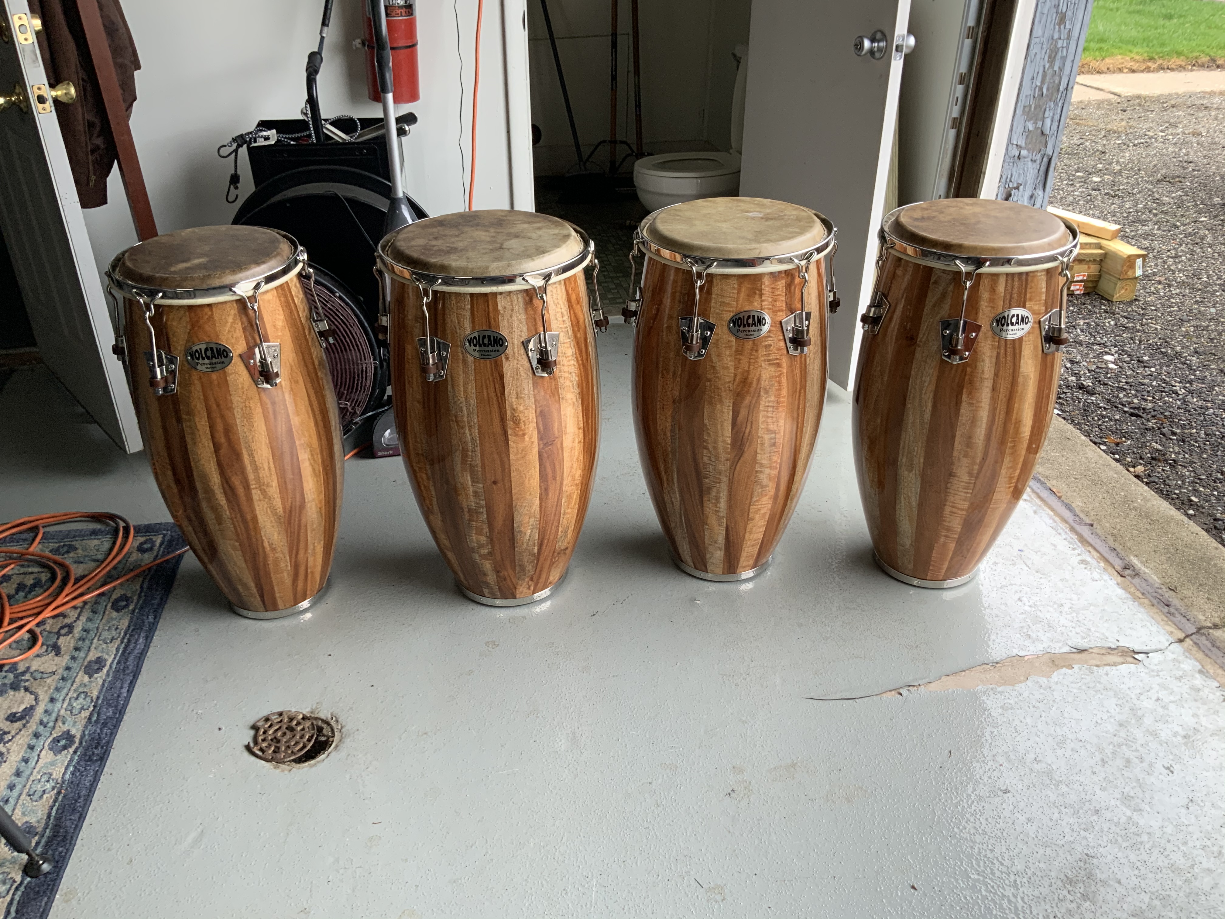 Volcano Percussion congas made from a Monkey Pod/Mango exotic wood combination.