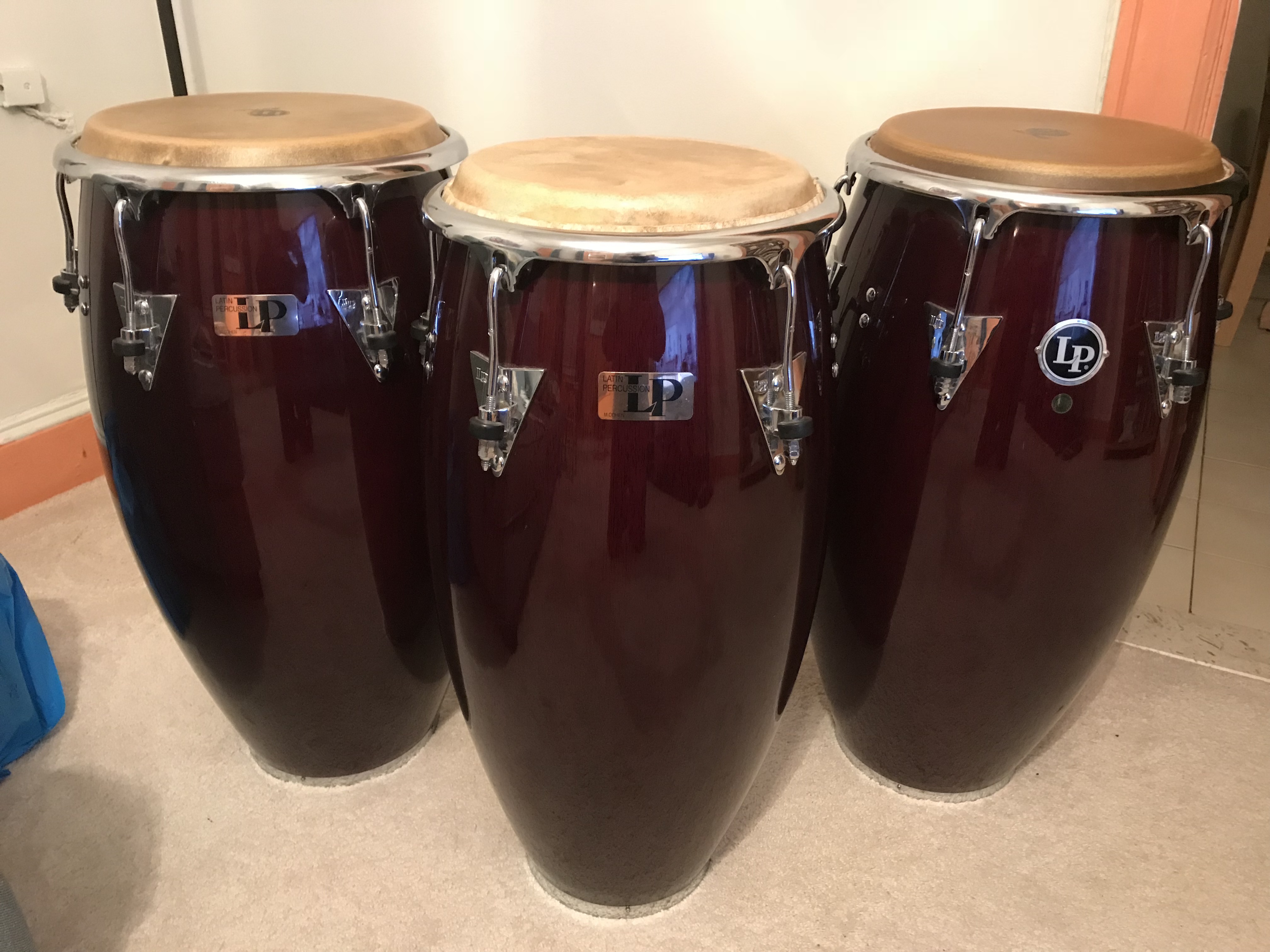 I have for sale on ebay a used set of LP Classic Congas in red wine color. The set consists of one Tumba, one Conga, and one Quinto. No shipping, ONLY pick-up. Please take a look at the ebay link below. Let me know if you have any questions. I can also provide more pics for those that are seriously interested. Also, my price is firm and non-negotiable. Thank you!