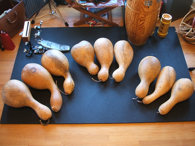 Since you got a few, maybe make one of each different tone. I like the neck of the shekere not too short, so that when your playing in not likely to slip off, and get damaged.