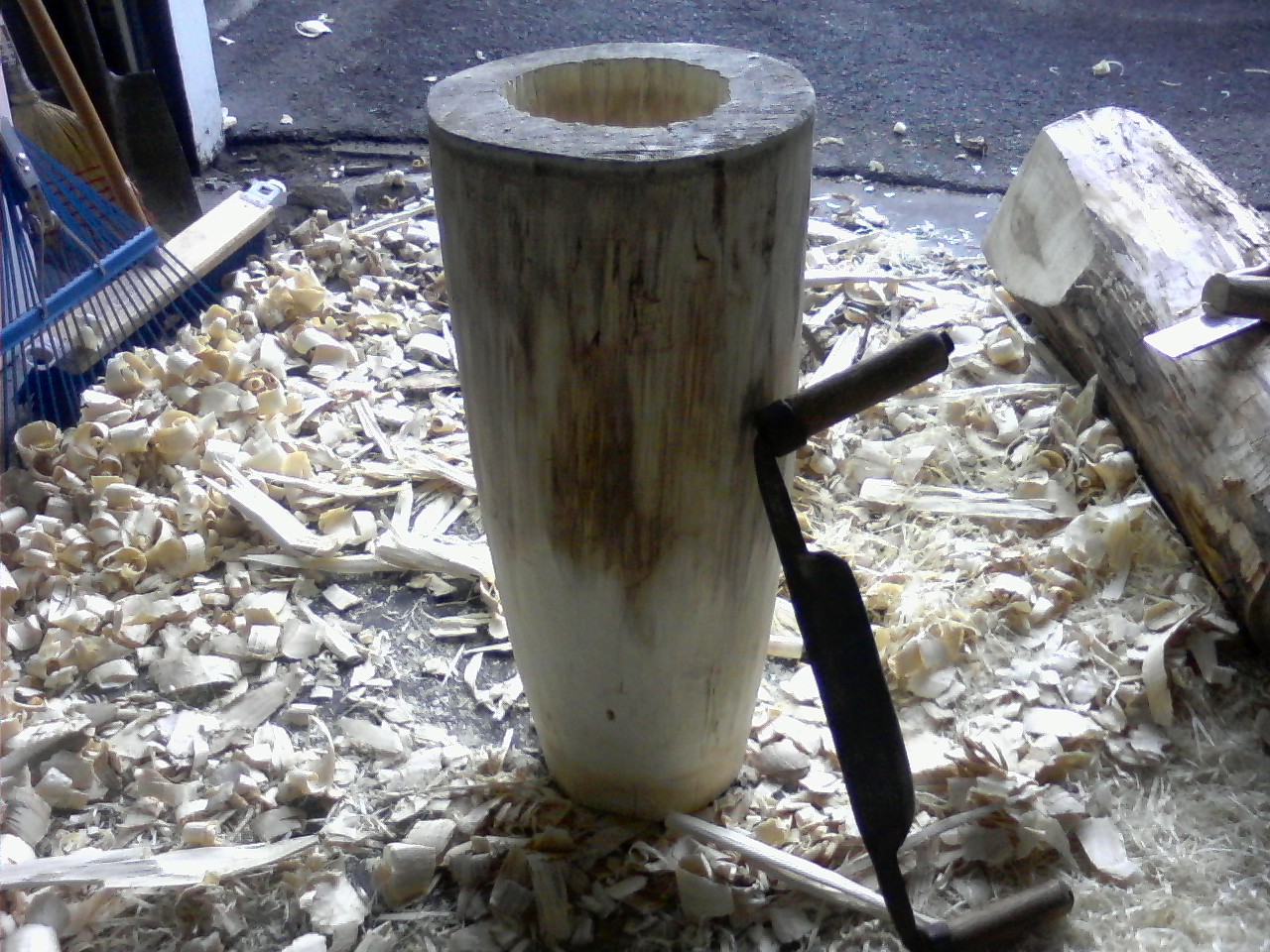 Hollowing out the log with drill and Chisel. I used a chain saw too at one point...