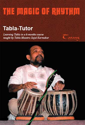 This practical tutor provides a unique course on Tabla, the queen of percussion instruments, teached by Tabla Maestro Sajal Karmakar. A 6-months course routine along with a great deal of compositions will give you much more than only the opportunity of being introduced in the art of Tabla playing. You will learn through easy-to-understand steps the alphabet of Tabla, part practises and whole compositions. Each syllable and each combination of syllables are demonstrated thoroughly with close-ups of the hands. You will find that this course is a fantastic opportunity to really learn this instrument, not only giving you an insight or giving you a lot of instructions and theoretical knowledge which you are not able to adopt at this step of learning. Sajal Karmakar is a well experienced teacher since 3 decades as well as a leading member in the perceived music school "PAYELIA" in Calcutta. Furthermore he is involved as an examiner in several music schools. This fantastic seminar, held by a highly qualified teacher, takes any serious student from the beginning steps to advanced level of playing. It will supply you with a course routine which will change every week.
