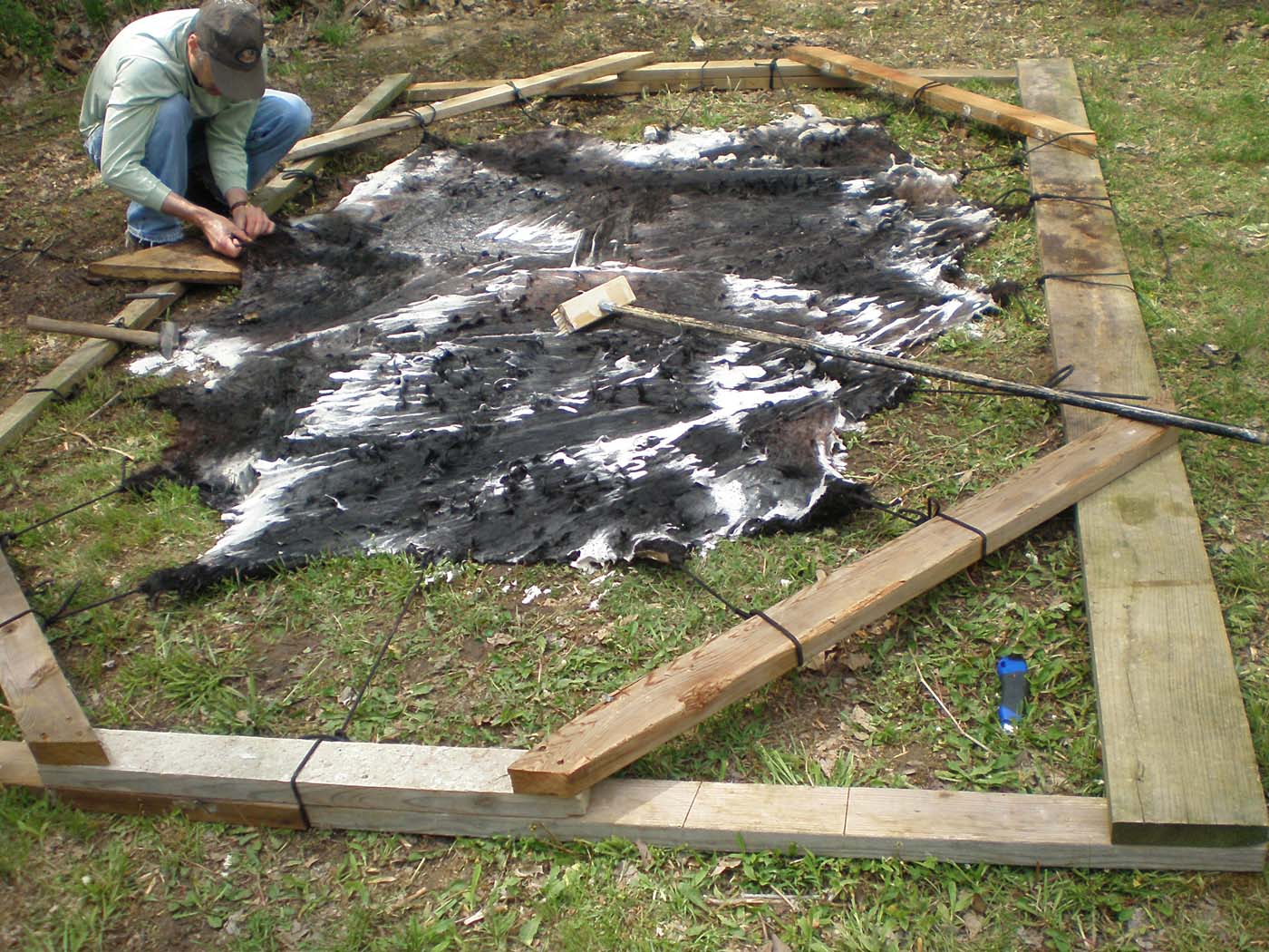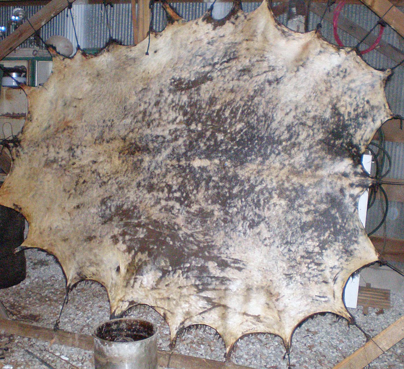 Good Stuff! I follow these same steps with whitetail deer hides. I never thought about a power washer though. Great idea! How will you get the hair off? Scraping? Being that I like the look and feel of the skin grain, I usually soak the skin in water mixed with Hydrated lime for a few days. The skin pulls out easily after that. Keep posting pix of your next stages!