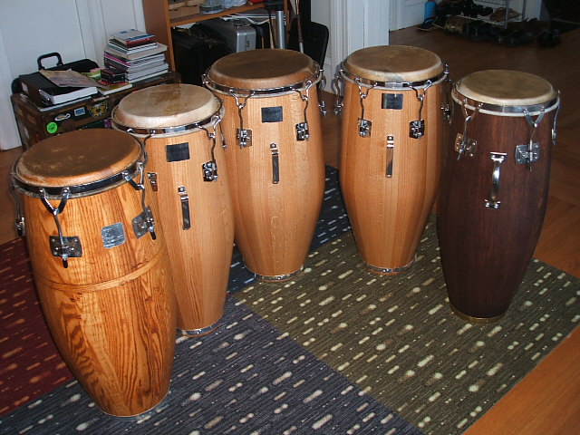l to r 10 3/4" GB conga, Resolution quinto, tumba conga, GB 9 3/4" quinto