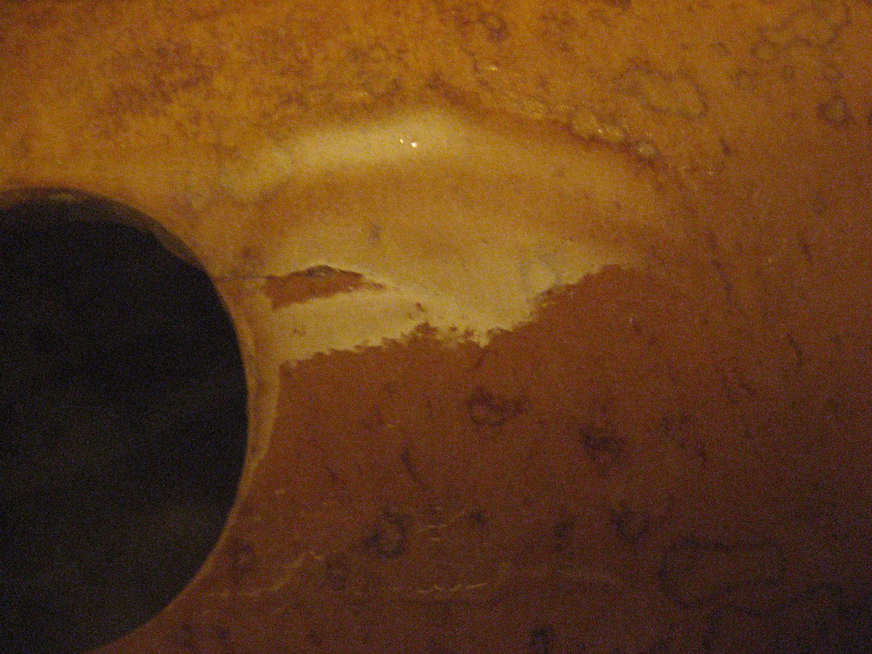 Gourd 2, showing repaired crack, and imperfection filled with clear epoxy resin.