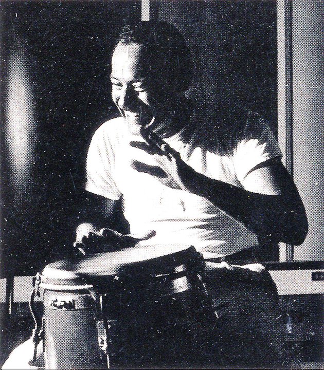Ramón "Mongo" Santamaría Rodríguez (1917 - 2003) arrived in the U.S. in 1950. He's seen here playing a quinto cajón. Photo from the back cover of Yambu (1958).