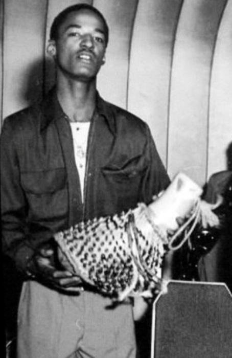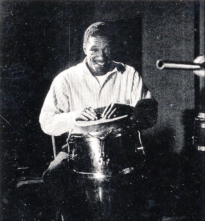 Francisco Aguabella (1925 – 2010). Photo from the back cover of Yambu by Mongo Santamaria (1958).