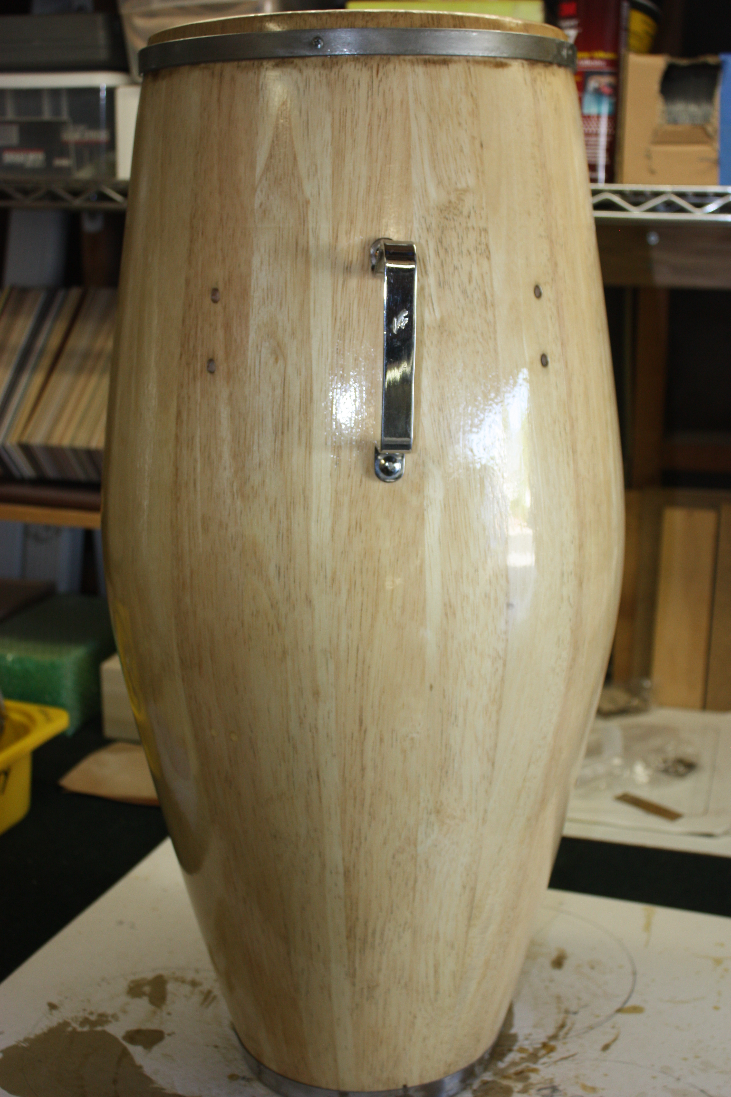 I just finished refurbishing a totally neglected, TOCA Quinto that I found in a Garage sale. I replaced the thin metal ornamental bands with 1/16 inch Stainless steal one's and took it down to it's natural Asian Oak wood finish. It has an outrageous tone on it, a nice little Conga. It has an 1o" inside diameter and appears to be a early Elite series, around 1999-2000.