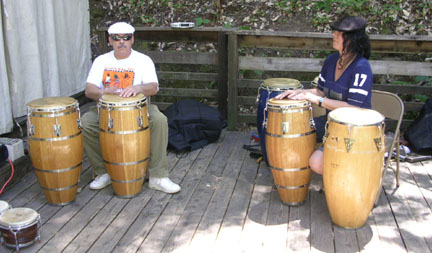 Man, Dave, you missed out tonight. After that sweet Columbia we laid down in the dorms with Bobby and the boys, around 11 I think, we heard about a session going down in a teacher's room up the road, picked up some party supplies and headed over there. It was, if this is possible, nearly as heavy as the beach party. More cajon based - with cajon for the bombo/tumba, someone playing tumba cajon and tres gorpes, and quinto cajon. (Gearhead aside: All the cajon were Fat Congas and sounded awesome). All the heavies - minus Francisco - where there and it was incredible. Four great singers taking turns - Lazaro Gallaraga (Conjunto Folklorico Nacional de Cuba), Reynaldo Gonzalez (Afro-Cuba de Matanzas), Toto Berriel (Los Munequitos), and Erick Barberia (not as well-known, but my favorite of the rumba singers). Four generations there, and Havana and Matanzas, so it was really interesting to hear the different styles,. On quinto cajon, Jesus Diaz, Lazaro, Toto, and our own Bay Area guy, Chris Walker, took turns. Mike Spiro was there as well, playing mostly claves and tres gorpes. (He absolutely killed it on quinto the night before. Killed it. Incredible.) John Santos and Colin Douglas were there as well, layin it down. Scott Wardinsky was my favorite on bombo cajon on the night - loved his playing. There were like 15 of us singing coro as loud as we could. So sweet to be part of this.