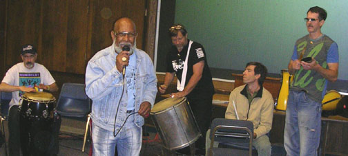 Day 6 Next morning I miss breakfast and go to Mark Lamson’s level 3 bata class. He is a gentlemanly type with a calm demeanor and VERY thorough! I liked it a lot, so I’m going back the next two days. I’m really a beginner batalero, if that,, so I was just there to observe and soak in what I could. I tapped out patterns on my legs – they call it “mirroring” – and it seemed a good method for learning this music. I already have plenty of recordings and notation,, so I’m not bothering to write anything out. Then, went to my favorite coffee house and had some tea. Back to lunch, then off to Toto’s Conga (comparsa) class! Did I mention I love that guy!? He’s got such great positive energy! You can’t go wrong in one of his classes! I played mostly the bomba, then a bit of bell.. They had what we normally play as the lead on the Segundo, then added quinto on top of that pattern. Interesing.. It helps to round out the conga sound. After dinner, song class included mostly three or four songs to sing over comparsa, then a bit of a follow-up on the Orisha songs we’d been learning the last few days. Then, the second of Amanda Vincent’s lectures on African diaspora of bata, dry and intellectual as it was, still to me, a good addition to the workshops. Afterwards a party at Kevin’s house. Everyone was there, and the music as wonderful as ever!