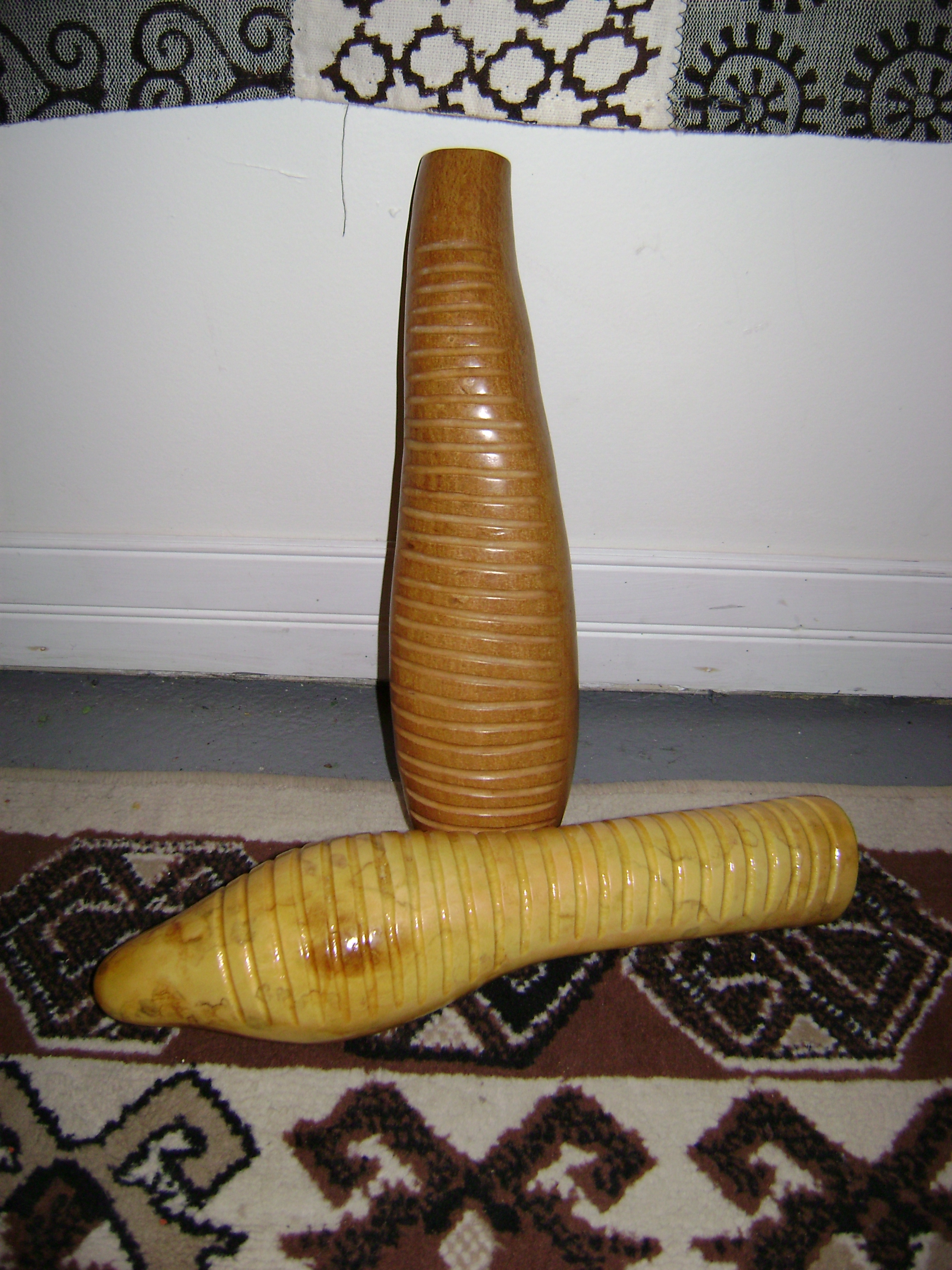 heres some other stuff...I love making instruments, i just wish i had the right tools....tools can be just as expensive as buying the instruments that your trying to make. My next project is to finish a larger haitian style drum and i'm even working on a small djembe. (if only i had a large lathe :cry: )