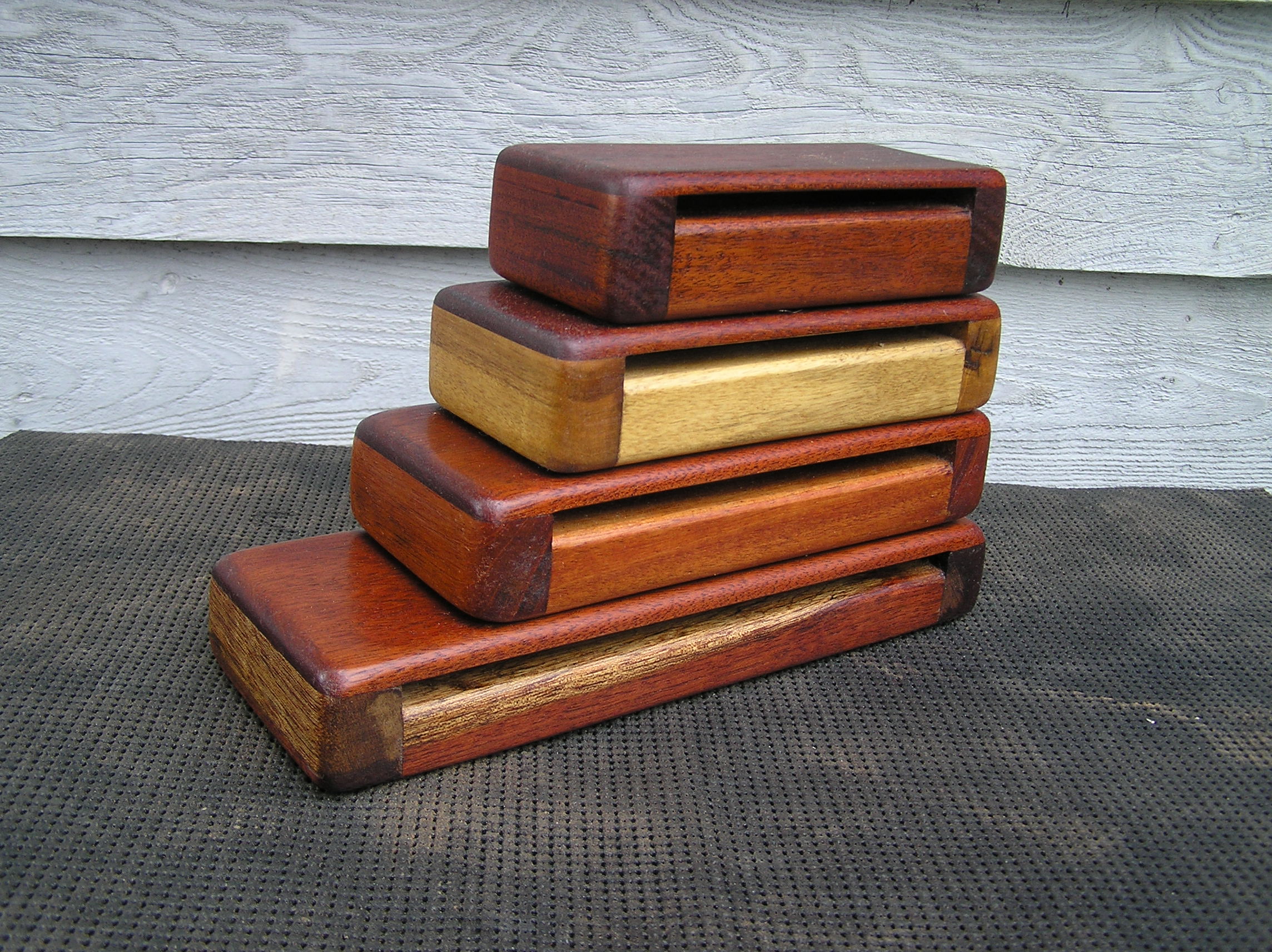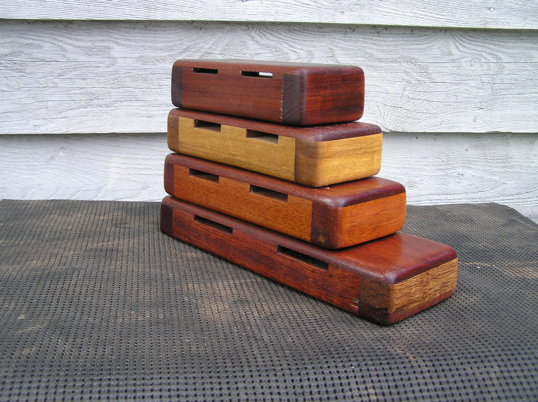 I call this Driftwood Collection, as all the wood pieces (except for beater tops) are from assorted tropical hardwoods that wash up on nearby beach after ocean storms. The tops are made of Honduras Mahogany.
