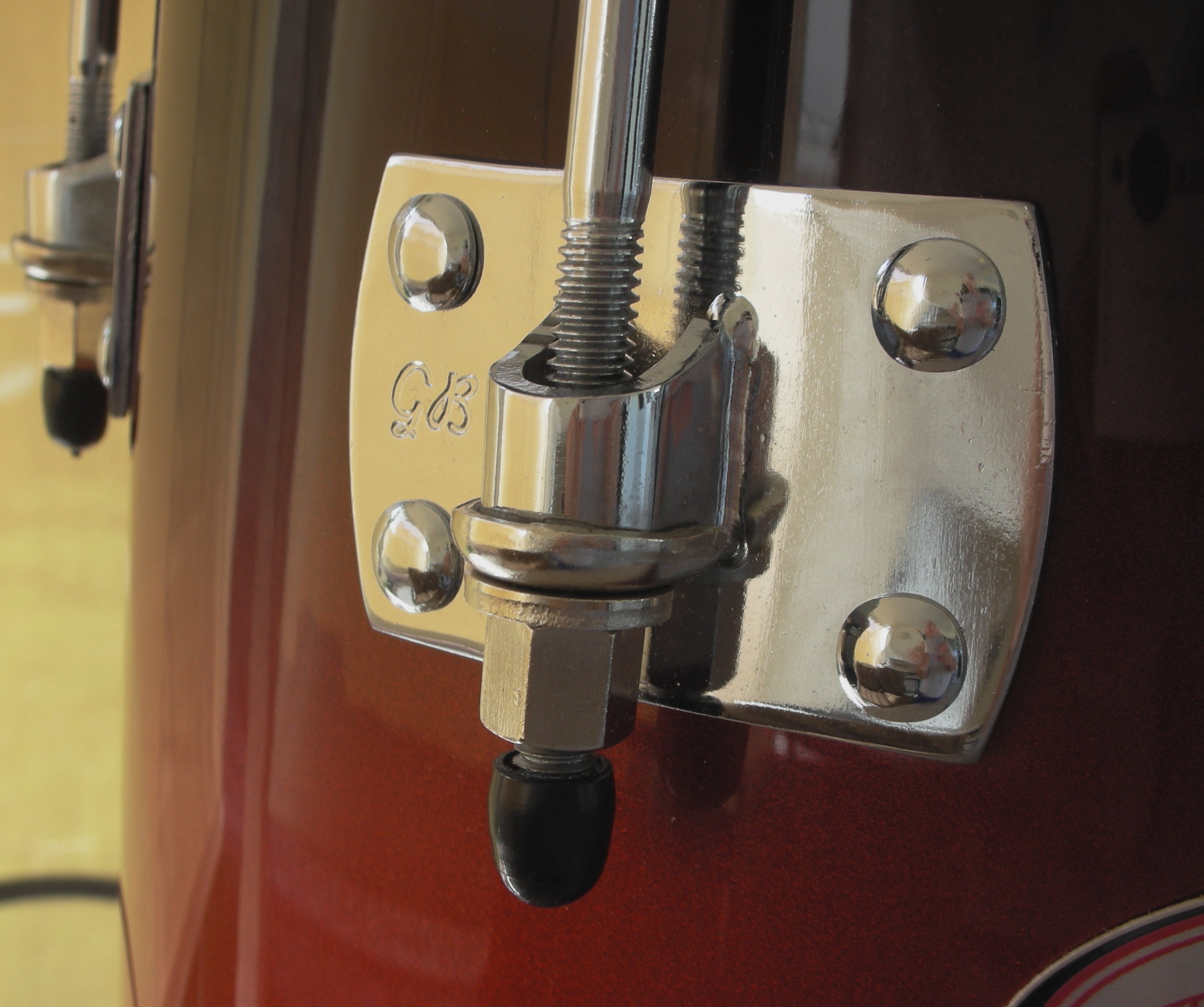 fade... not as red as appear in the photos (reminds me of the old cherry metal flake hot rod paint). Excellent fit and finish. Smell like fresh paint. Remo Gon Bop heads...plastic feel .. the rawhide is en route from Gon Bop. At some point will sport mule.