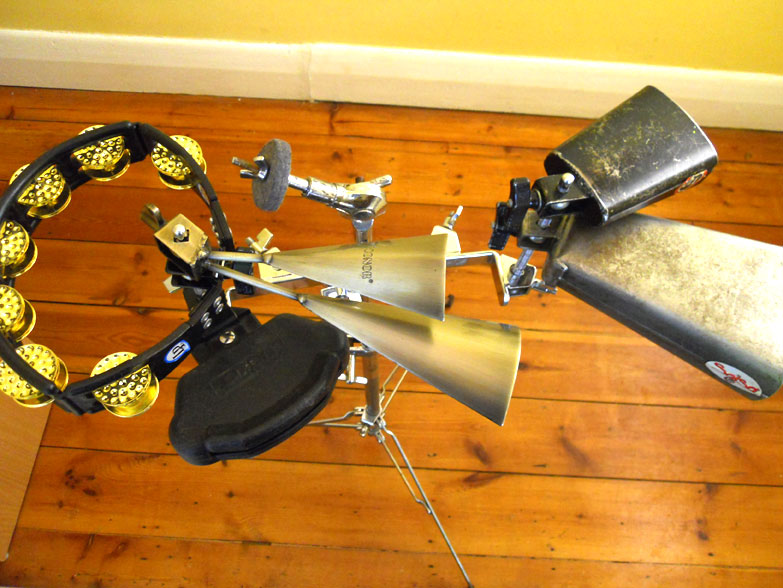 I would like to add a few more percussion instruments to the set. So this is my question, if anyone has a suggestion for adding more percussion sounds - including details on makes and models of the suggested instrument, and if they are freestanding, mount to the present conga stand, or require a new stand, or if there is some type of tray that attaches to the stand to hold them.