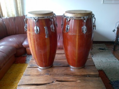 The painter suggested that he BURN the conga to match the color of the tumba, because the two drums were of different tones.