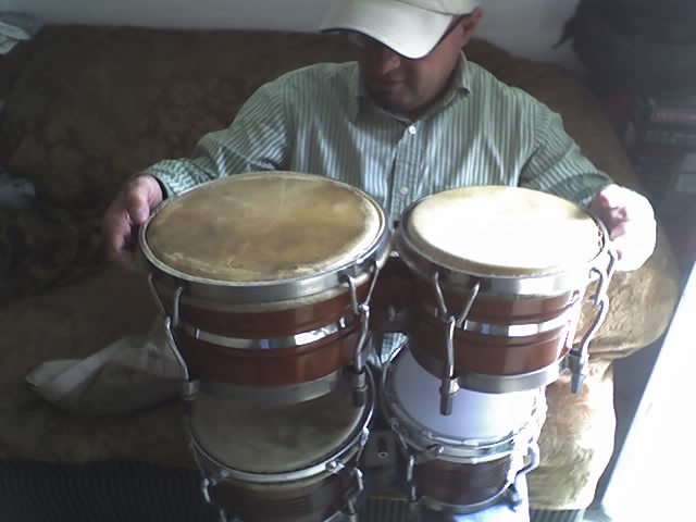 Beautiful bongos...Was it Jorge Miranda, from Ponce, who made the shells? He's a good friend of mine, and I know he made a super-large bongo identical to that one...for the bongosero in Marlon's band. Jorge can make some killer shells from the best native woods- and is a true bongosero having played with la Ponceña for many years, also with La Terrifica, so he knows what he wants in a drum...Saludos!