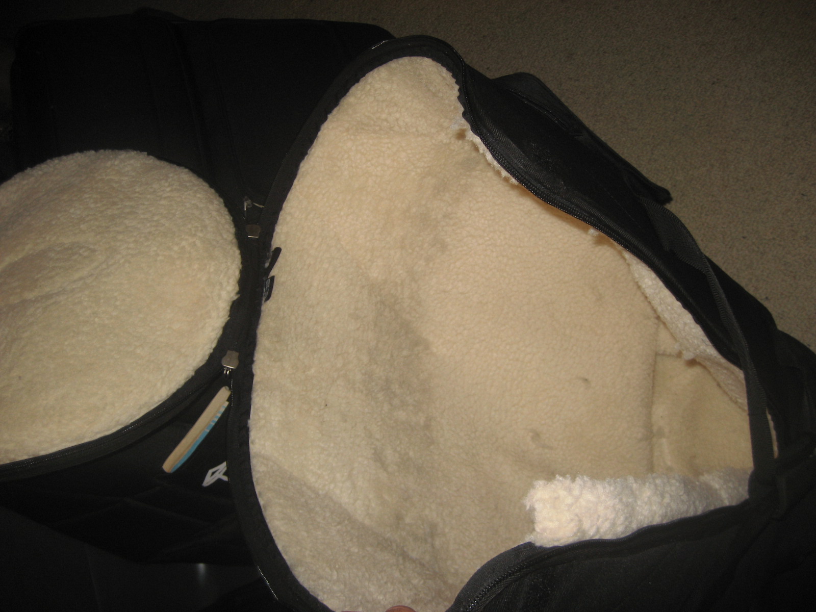 Anyone know where those sheepskin-like interior padding conga bags, are available ?