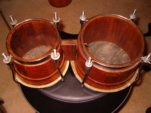I had that bongo' and now Faustino (Cuquito) in New Jersey has it. I had Jay (SOS) make the center piece. I have the original two cylindrical chromed rods that came with it. Is a Valje Jack Costanzo, circa 1957 per Valje price sheet from that year. By the way, it sounds incredible. This is a photo of when I had them. I pasted a Cuban flag emblem on the center piece Jay made for me.