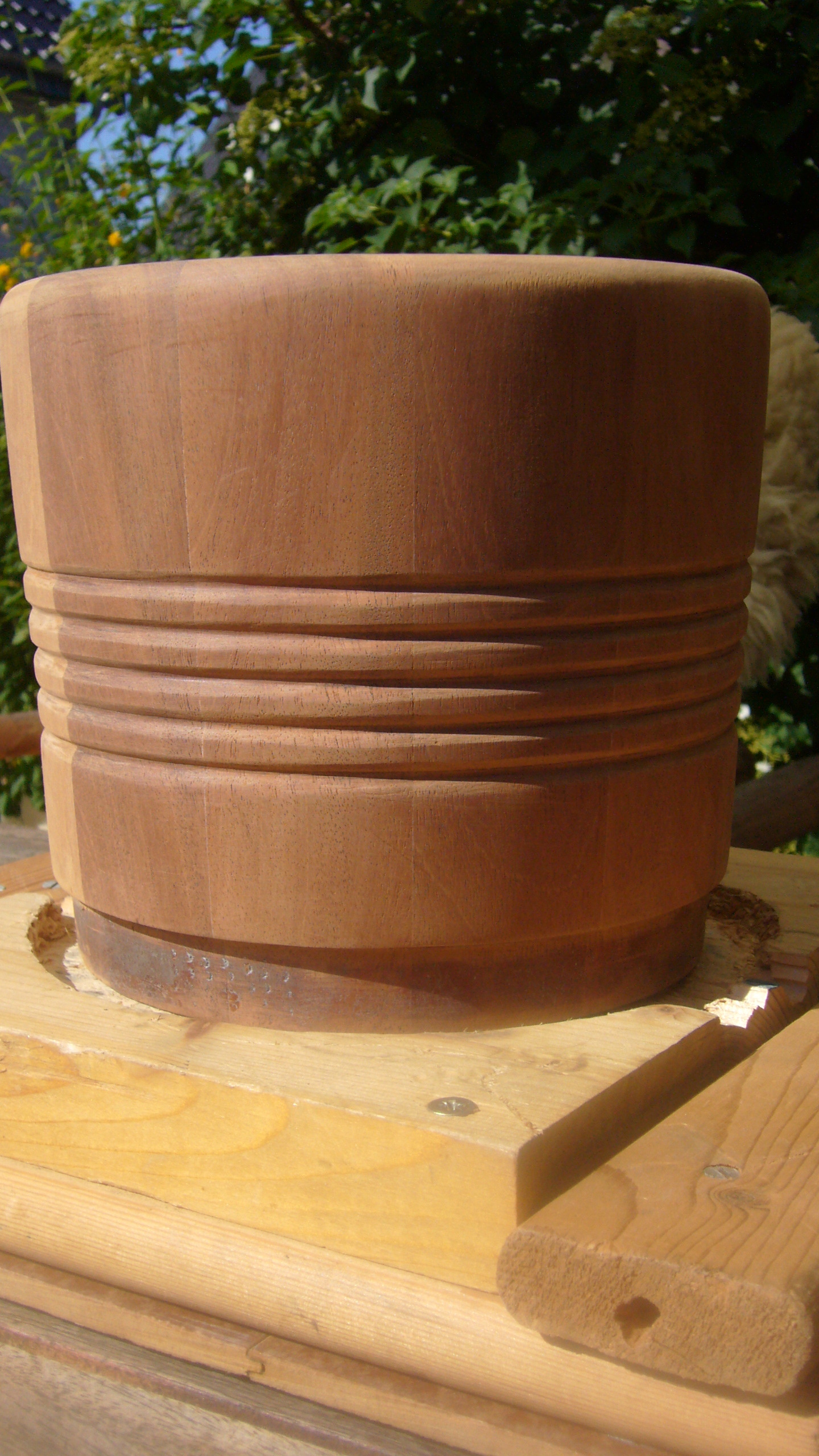 What is plastic wood? Some wood filler I presume. Too late: I have closed the remaining small openings that I could not get any tighter with a mixture of glue and the mahogany dust of the sanding process. As soon as this self-made filler has dried and the shell is sanded, I am about to apply the first layer of lacquer.