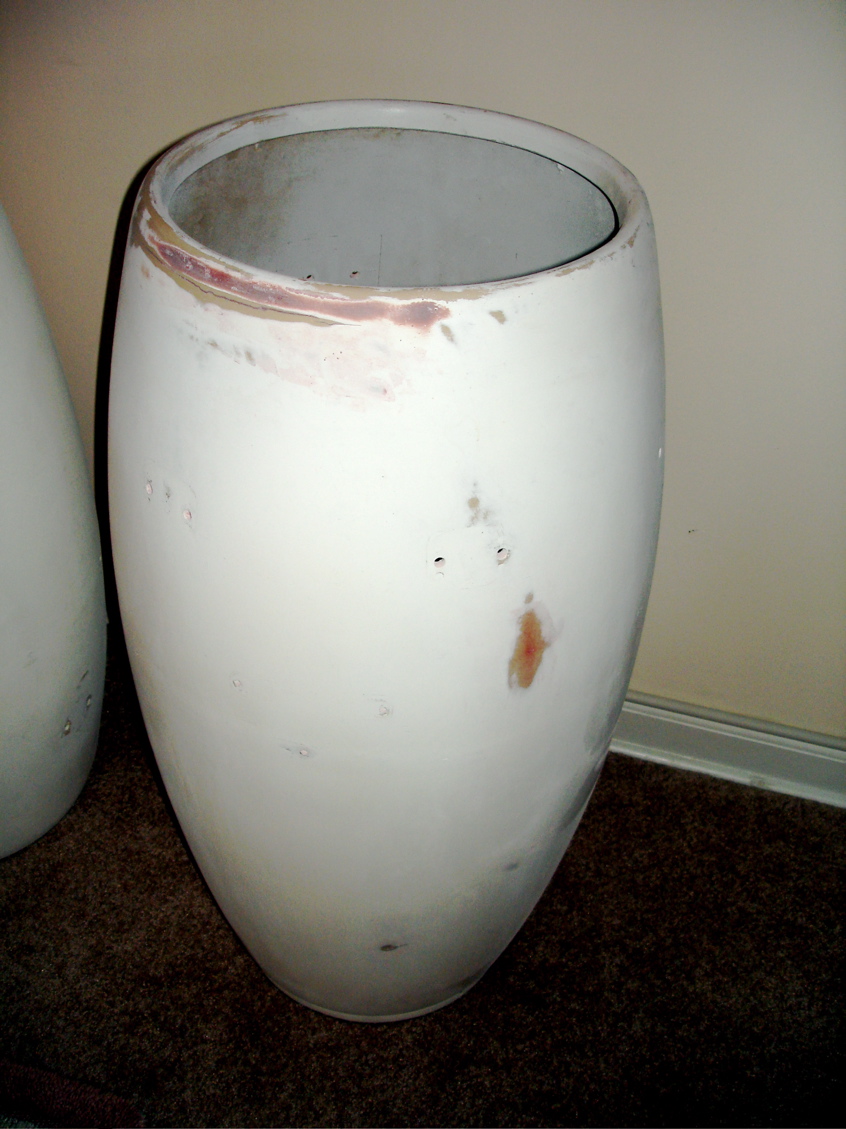 Here are some photos of my Slingerland Congas that I have decided to restore. I have taken all the hardware off. I need to polish the chrome. I have fixed the fiberglass shells with a fiberglass filler. I have sanded the shells smooth. I have to tape up the bottoms and then they will be ready for the painter. I was thinking White with metal flake or white pearl. I will keep everyone posted on this project. Enjoy the photos.