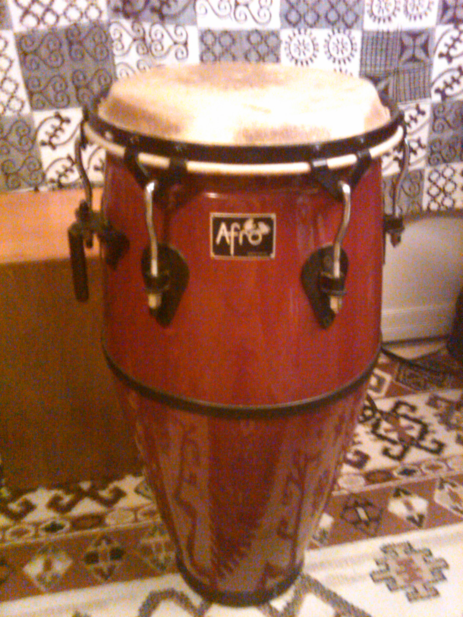 Well, I ended up buying it. see pic below. I paid 120$ for it and it turned out to be a 11 3/4 inch congas as opposed to a quinto. Its fiberglass but like no other fiber drum i've seen. the inside looks like some particle board remo type thing...not like an lp or toca fiber drum. But its a solid drum. will be good for taking some where where i don't care what happens to it...i.e a beater drum. Its a butt ugly color too IMHO, but overall I thing it was a great price. (i saw a old CP quinto in guitar center for 119$...and this Afro conga is by far a better instrument.