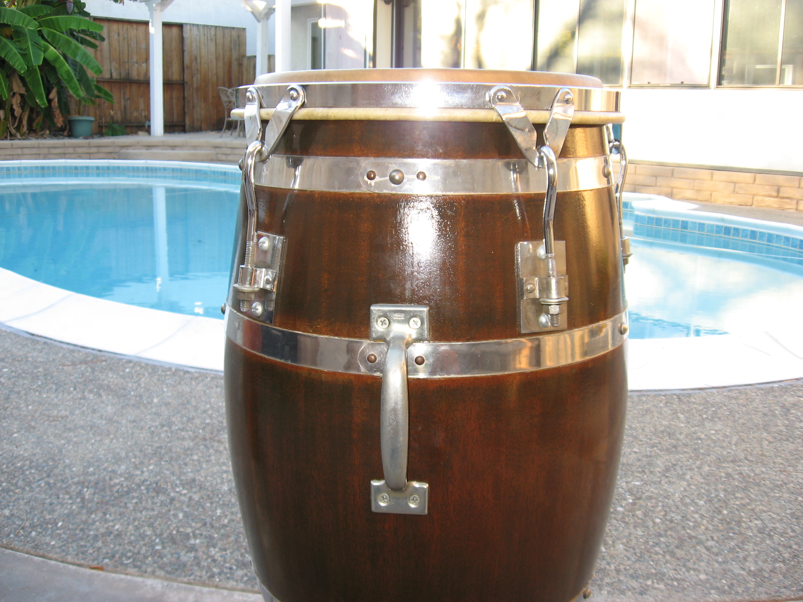 Alright guy's been busy. I did the conga, not with Watco, buff it out with a 1600 rpm buffer. But first i sanded it down, put a coat of Amorall on it to bring out the color and then buffed it out. It flat in color but look's great but i still wonder if i should Watco it. The tumba was stained by me in 1983 and i applied a poly finish on it. It wasn't a great job and i had to put some wood putty on it to cover the gouges. I would like to sand it down and match the conga but it might not look like the conga but i gotta try cause the conga looks great for being almost 30 year's old
