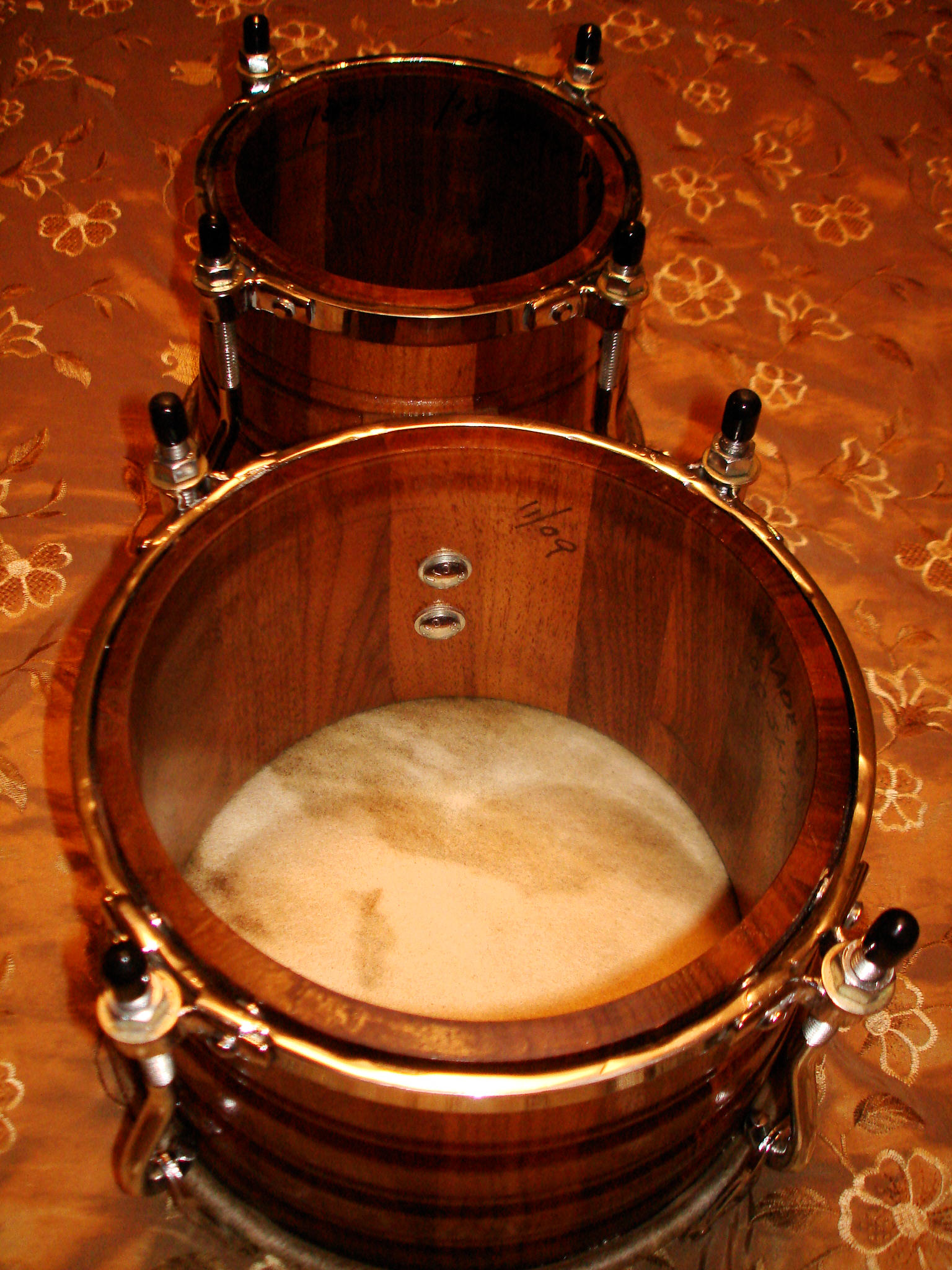 I HOPE THAT EVERYONE IS DOING WELL. I JUST WOULD LIKE TO SHARE WITH YOU, SOME PHOTOS, OF MY NEW SKIN-ON-SKIN, BLACK WALNUT BONGOS. I HOPE YOU'LL DIG THEM, THANKS.