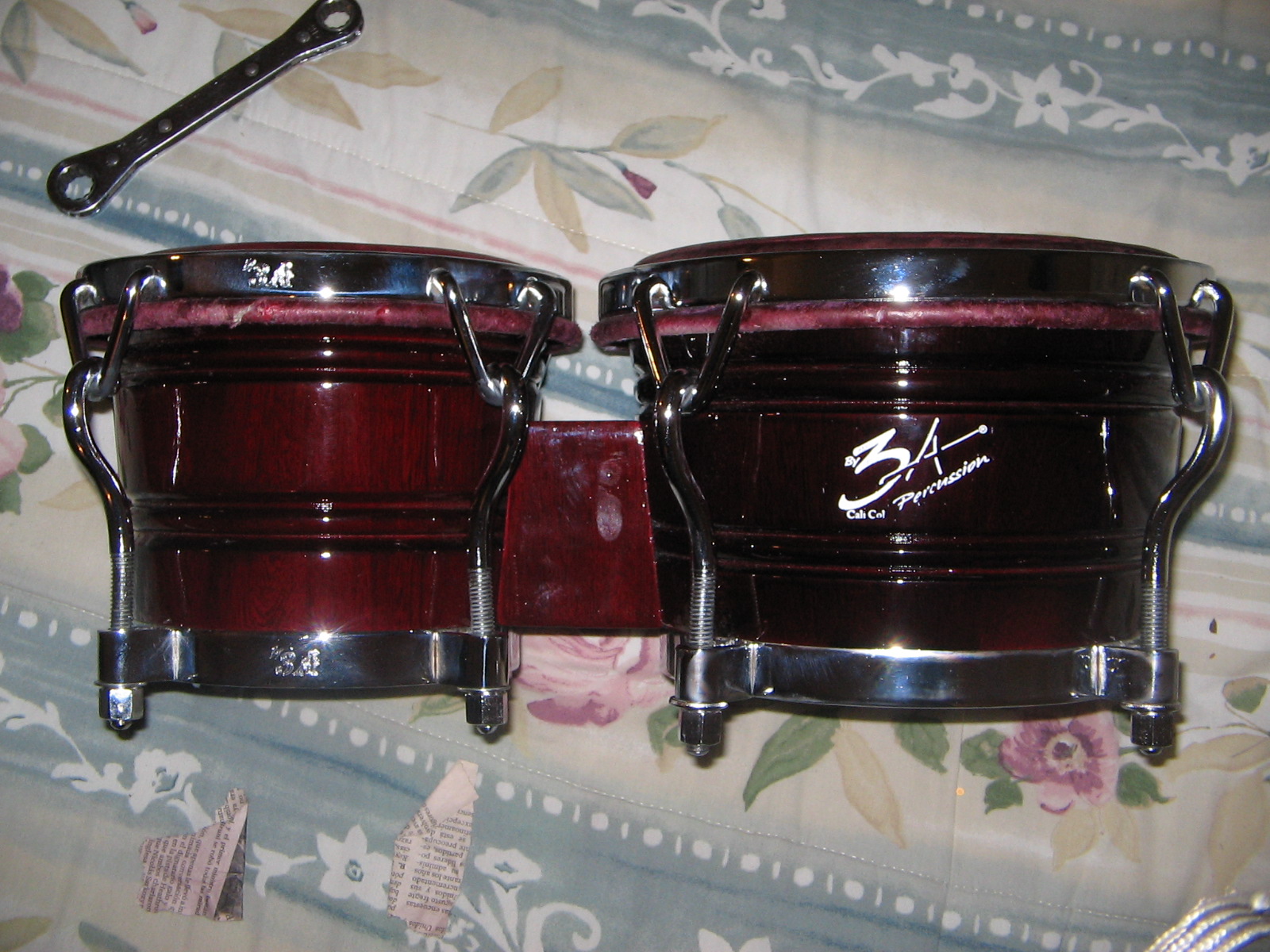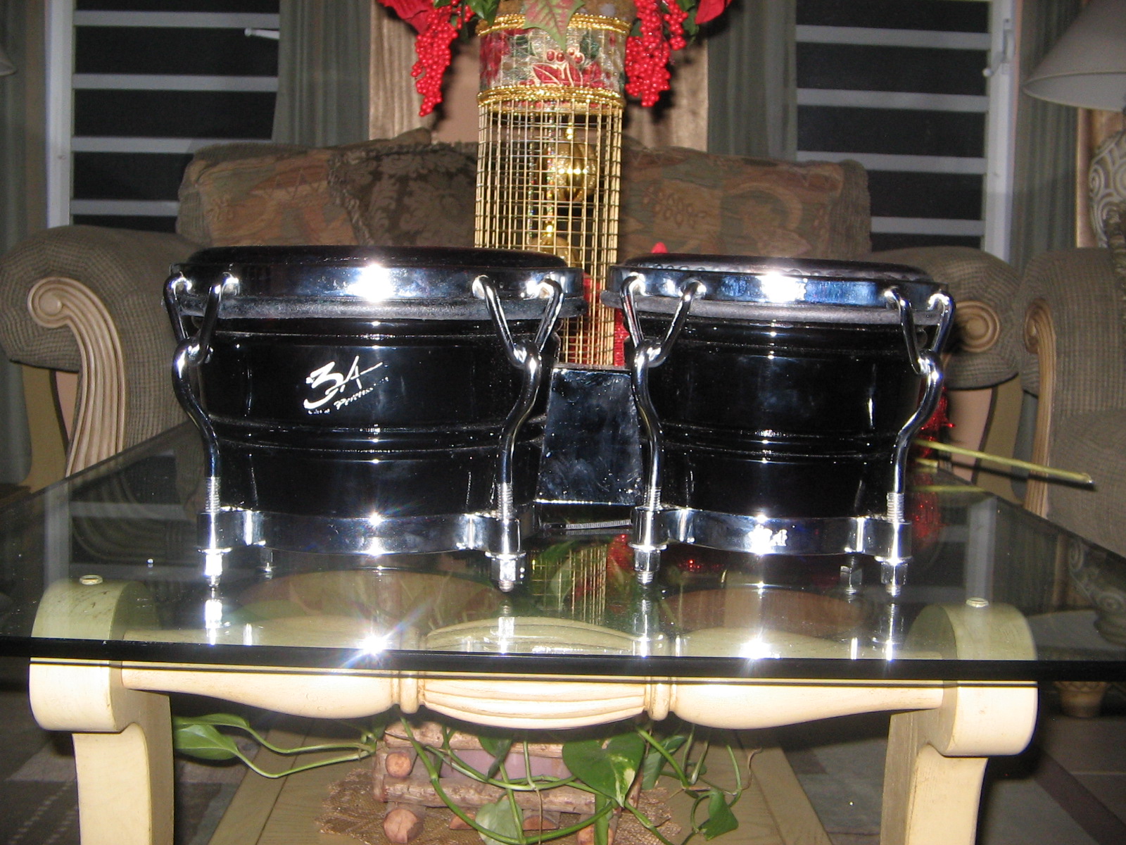 Bongoceros :D , Next week 26 May, Alejandro Arce (Aka 3A) will land down here at the Island of enchatment with 20 bongos for sale. If anybody is interested let me know so cordinations can be made.The Bongos are made of Rose Wood (genus Dalbergia) with superior skins , heavy duty hardware and ready to play as you can see on this post pictures. Price would be $250 plus shipping. My cell # is 787-550-3932.