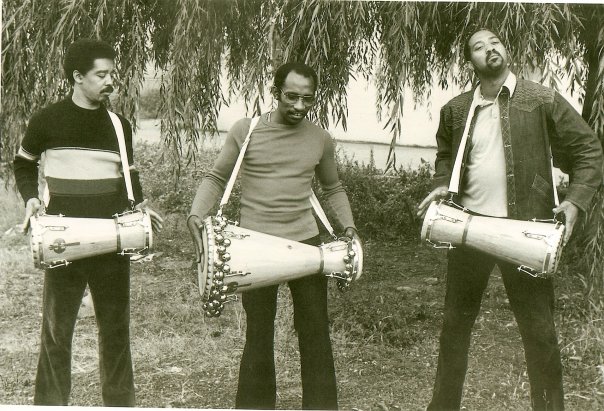 JohnnyConga wrote:RITCHIE "PABLO" LANDRUM.....half Cuban and half African American "Pab" was a student of Julito Collazo..He was my first Jimbe teacher and worked and recorded with Olatunji's drummers and dancers, along with a host of black jazz musicans...here is is on the right with Gene Golden in the middle and a young Steve Berrios this other phote of Afro American drummers 1962 from right to left is Garvin Masseux,Baba Femi, Pablo Landrum and Gene Golden....African Americans were also playing rumba in New York as well as African rhythms.. "JC" Johnny Conga