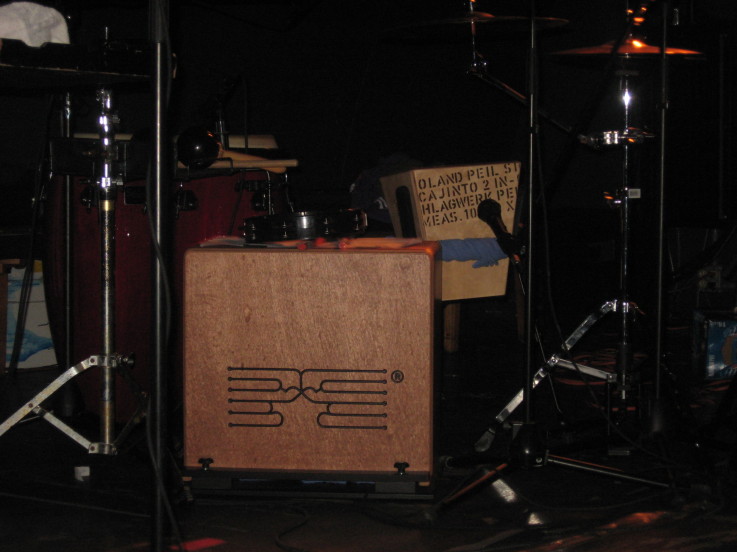 As for the cajon's, they are German. The big box is a Schlagwerk Bass Cajon and the other is a Roland Peil Signature Cajinto. I also sit on a Schalloch Burl Wood Cajon. I started using this (with congas) as a quiet kit for our acoustic gigs but one of my bands liked it enough that they asked I use it with the full set up. Some songs I play only congas, others, I compliment the drummer with the cajon kit, and on others, I play both while using lots of small percussion. It’s a lot of fun but this arrangement requires that I use a lot of microphones.