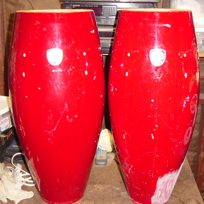 As far as stain, how about A transparent ebony like the AA Gon Bops,Order up the black heads to go with it.