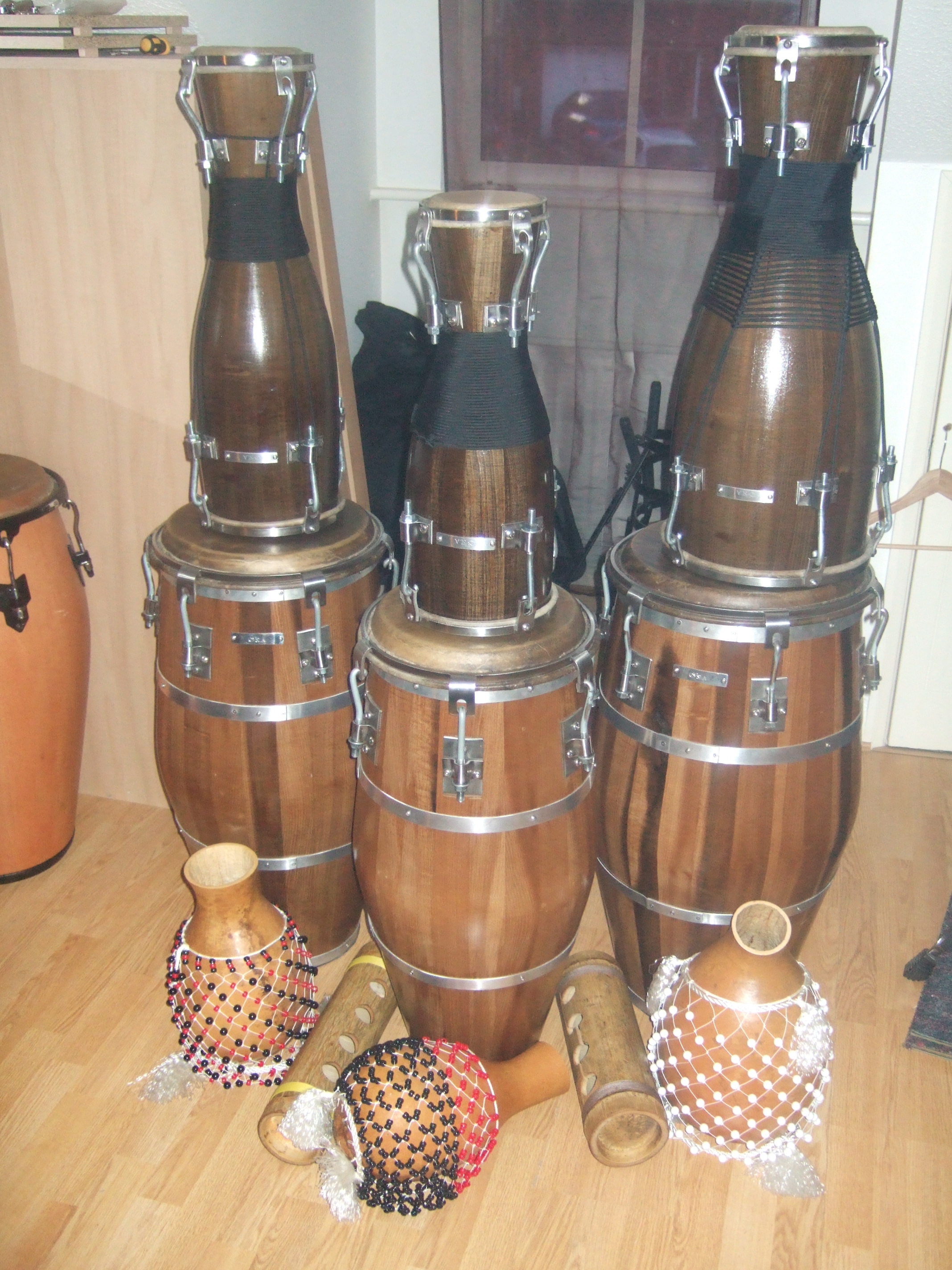 Congadelica wrote:Well this is my line up . Thanks to a member on this Forum I now own a nice Bata set . looking forward to getting a few people round soon to play . I hope you are happy with your new Requinto it looks great and when that Cuero in broken in it will be a screamer and the thick skin is cool for requinto particular in the Rumba setting .