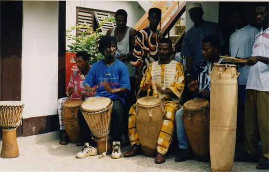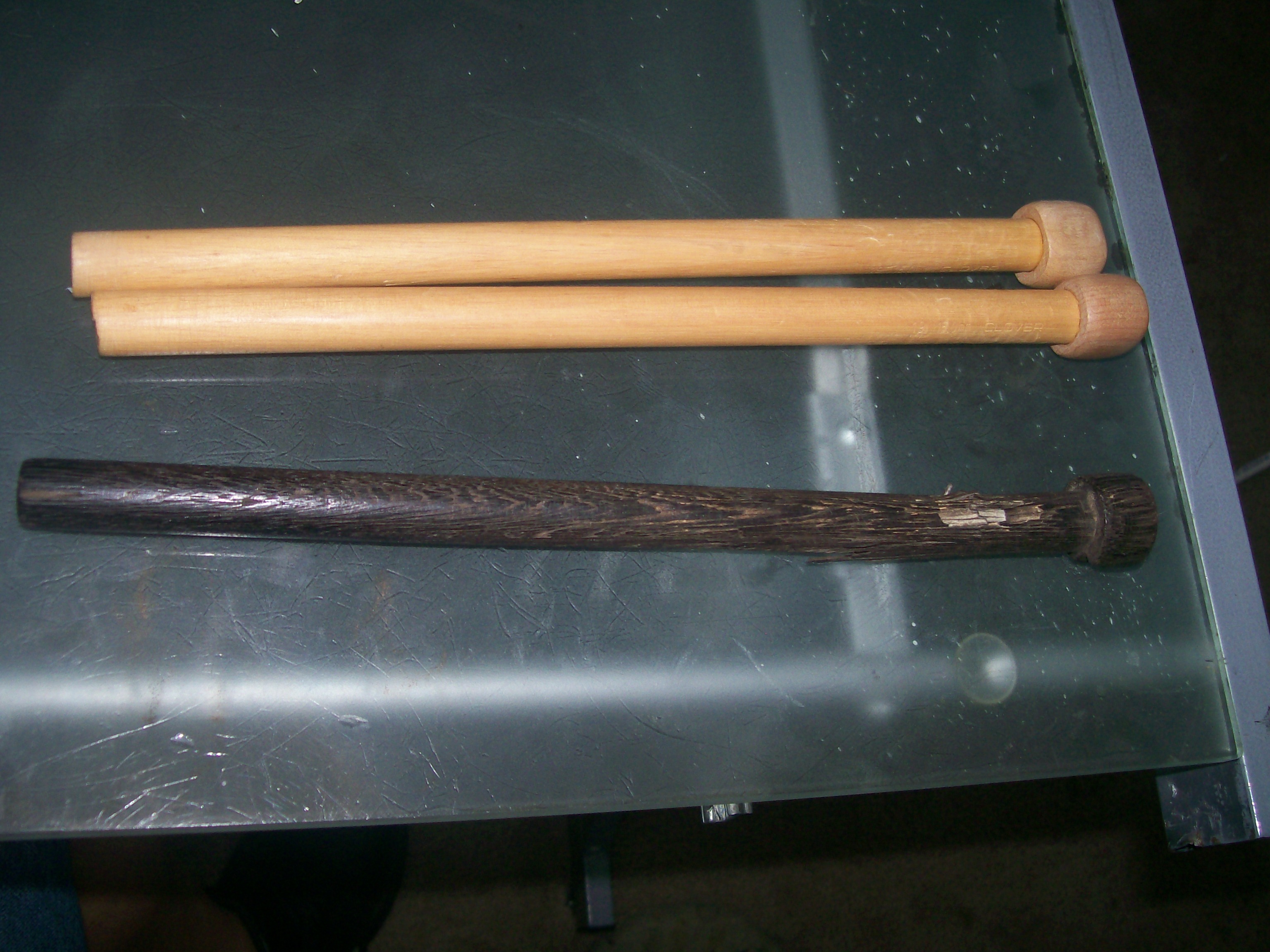 I have seen that are used on African drums were what we called whippy sticks like on Sabars. They are very flexible and not at all like typical drum sticks. More something that you went and grabbed of of a tree branch and peeled the bark off of, rather than a factory made item.